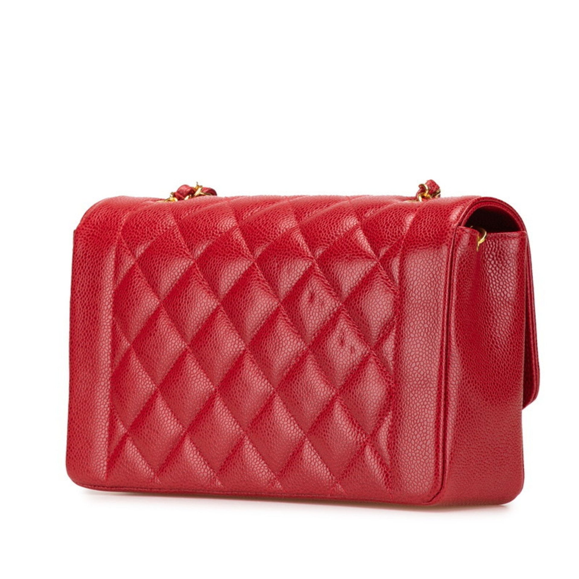 CHANEL Matelasse Coco Mark Diana Flap Chain Shoulder Bag in Red Caviar Skin for Women