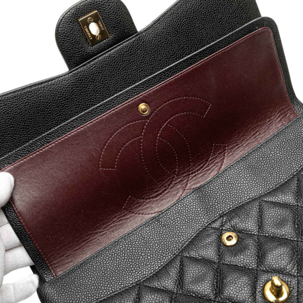 CHANEL Matelasse Coco Mark Double Flap Chain Shoulder Bag Handbag Black Caviar Skin Women\'s