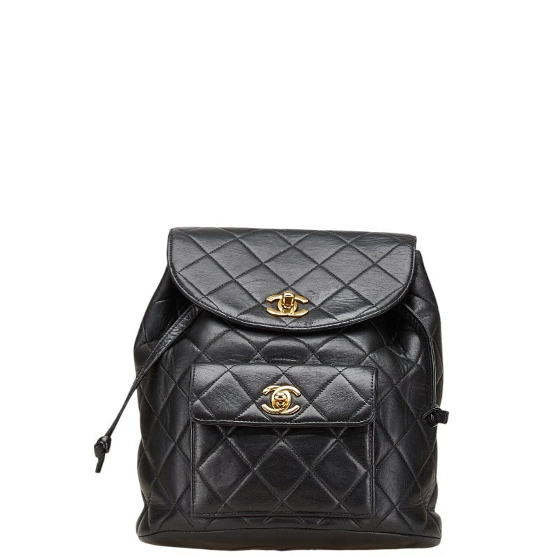 CHANEL Matelasse Coco Mark Gold Hardware Chain Backpack Black Lambskin Women\'s