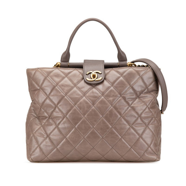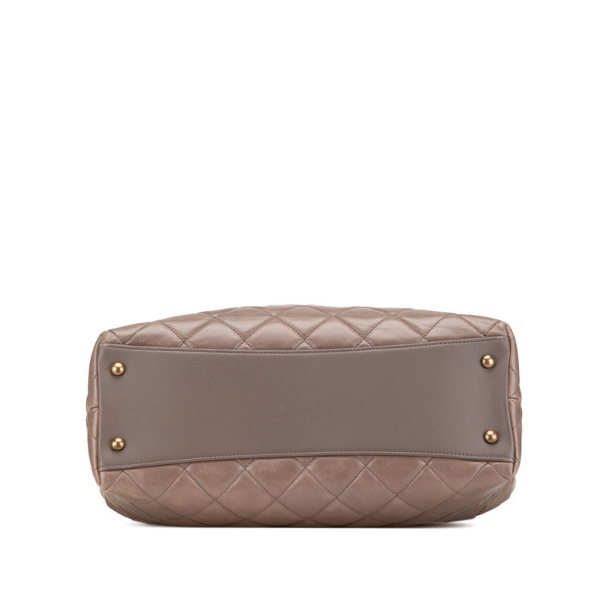 Chanel Matelasse Coco Mark Handbag Shoulder Bag Greige Leather Women\'s CHANEL