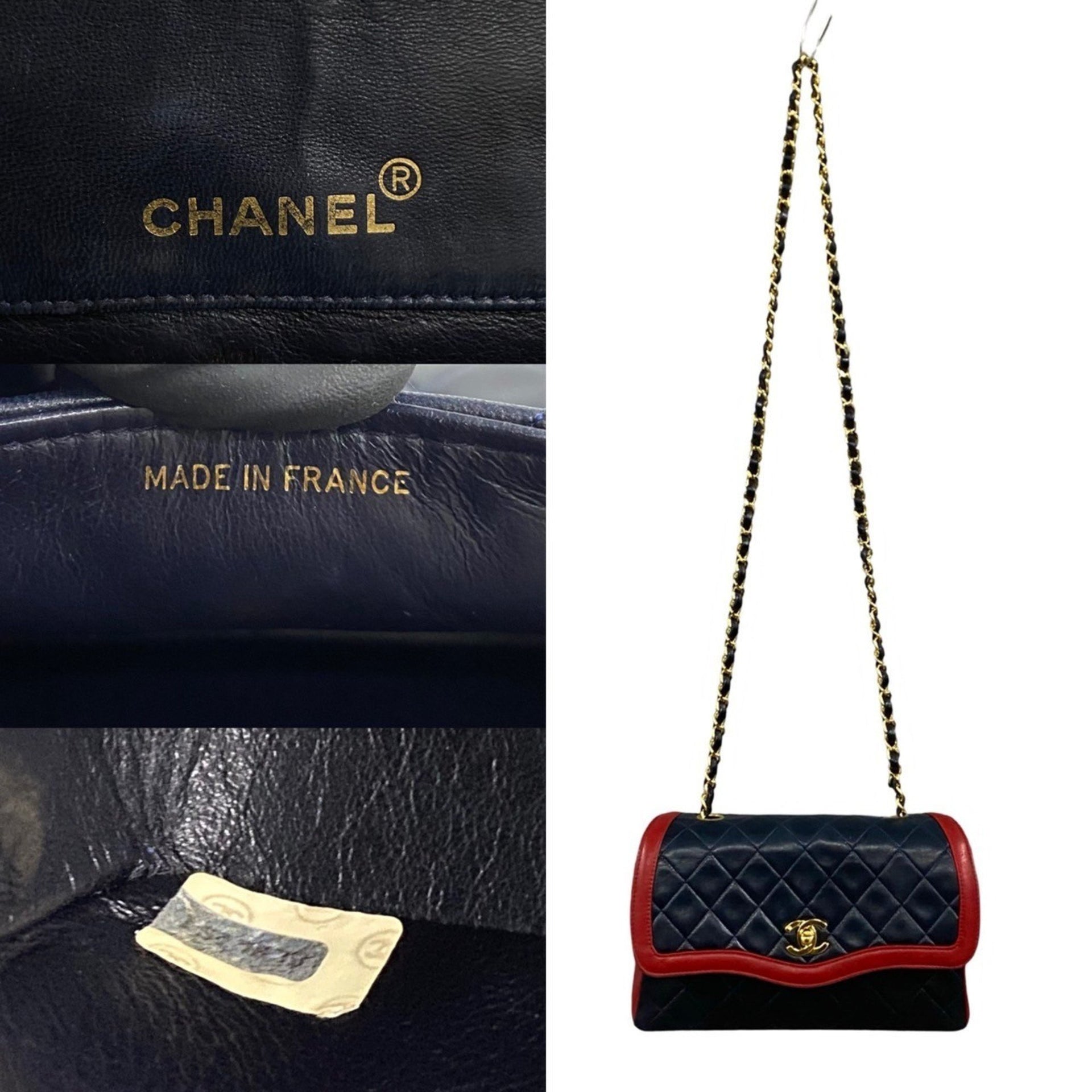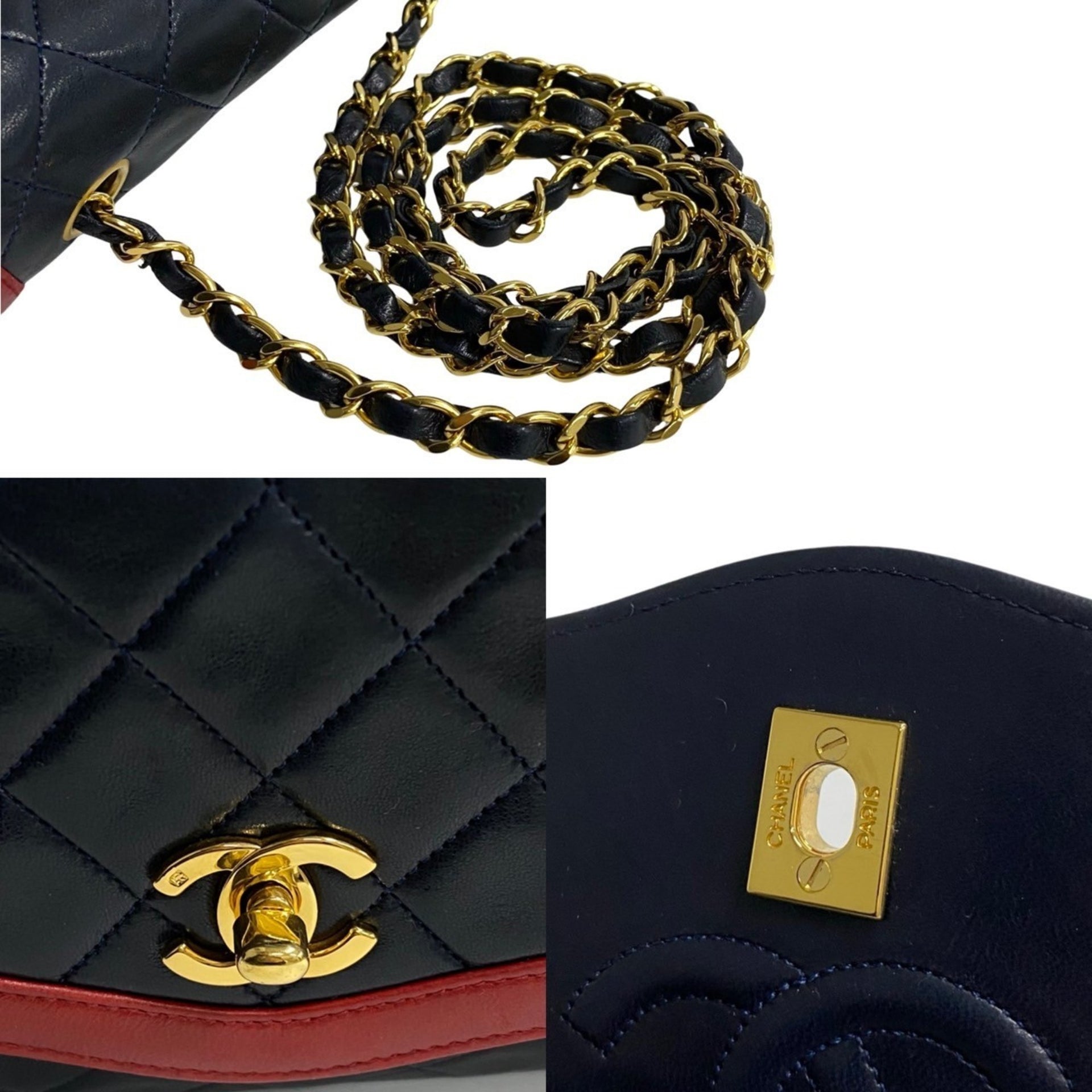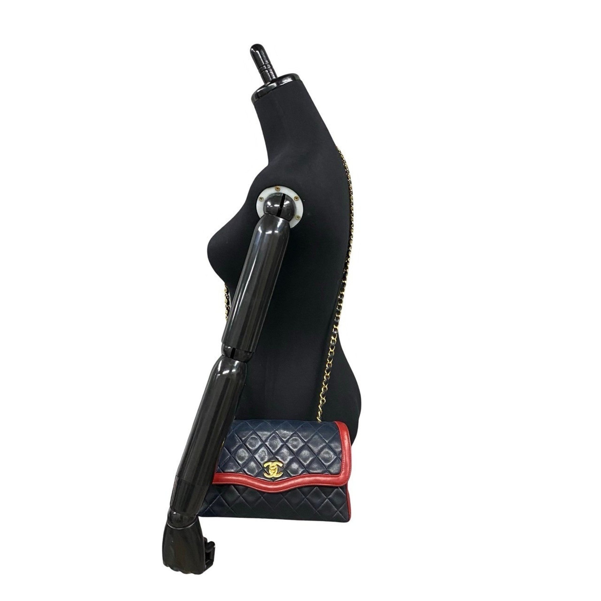 CHANEL Matelasse Coco Mark Lambskin Leather Chain Shoulder Bag Navy 88043