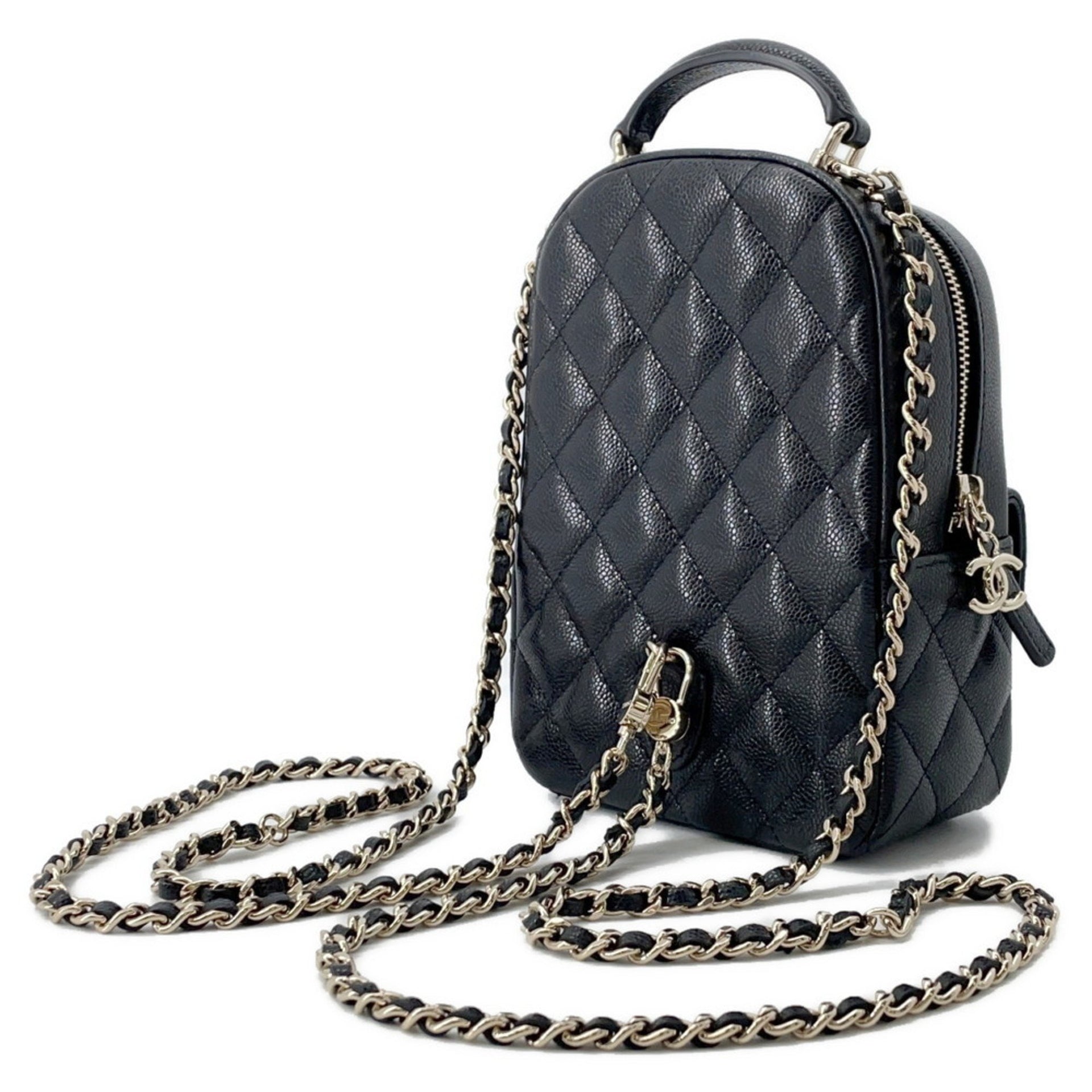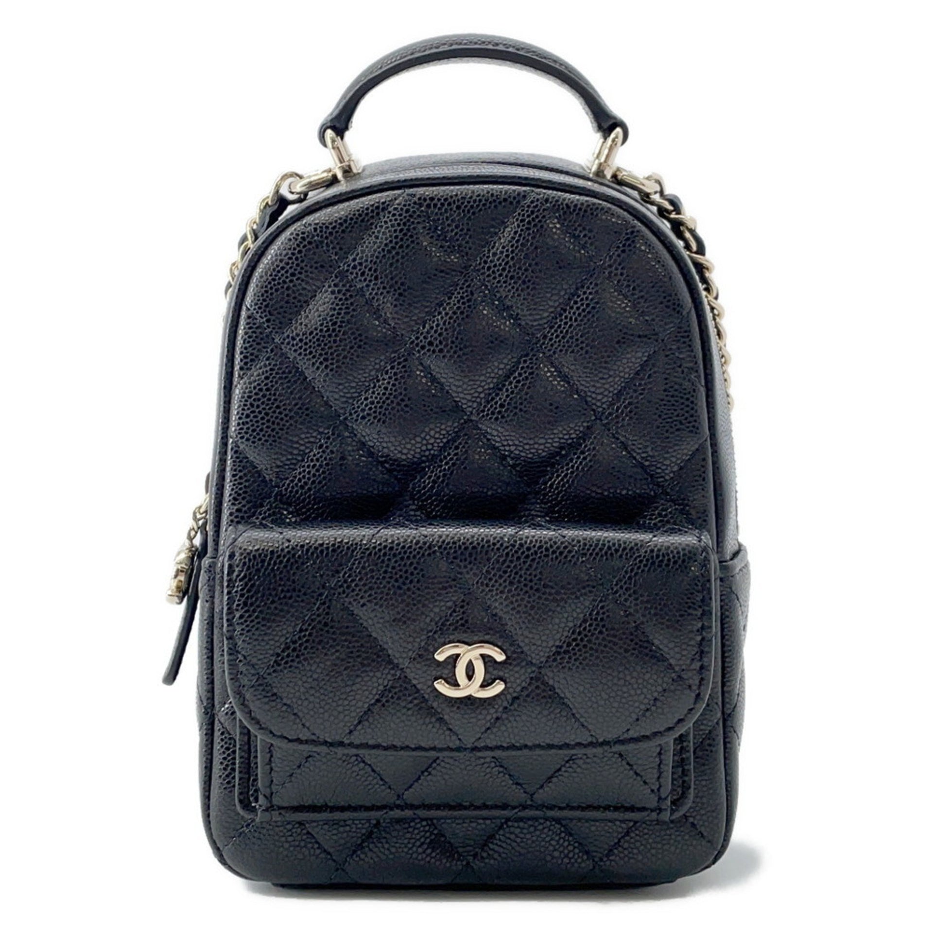 Chanel Matelasse Coco Mark Mini Caviar Skin Backpack AP3753, 2-way bag, black
