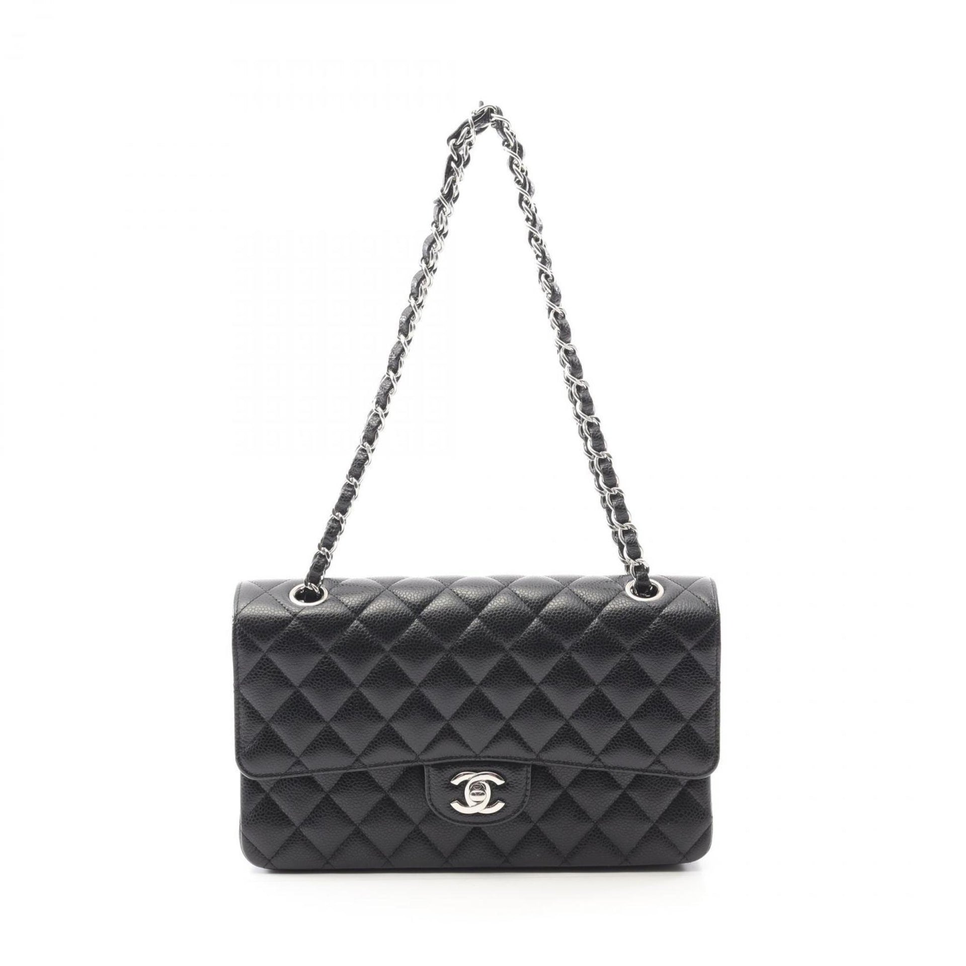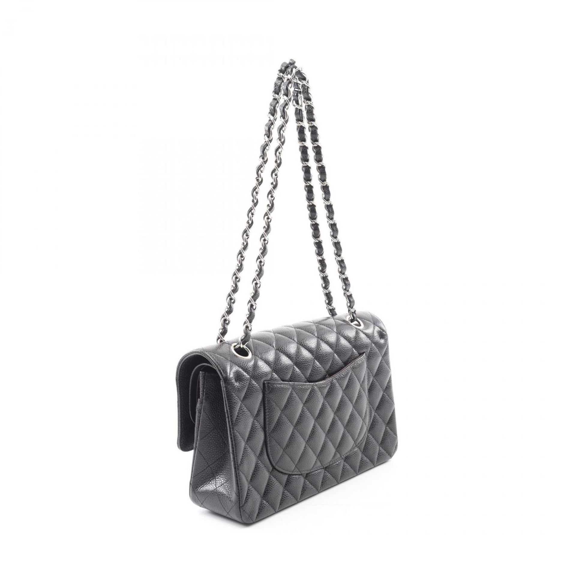 CHANEL Matelasse Double Flap Shoulder Bag in Calfskin Leather, Black, AO1112