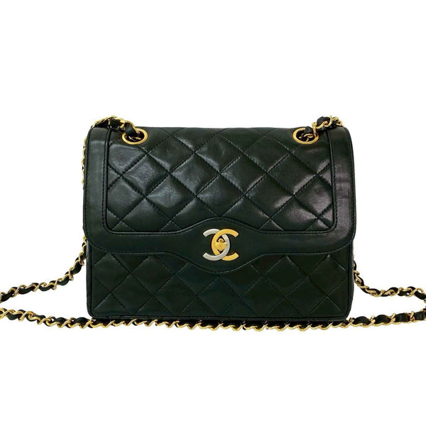 CHANEL Matelasse Paris Limited Edition Double Flap Lambskin Shoulder Bag, Black, d21-9