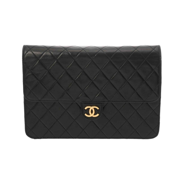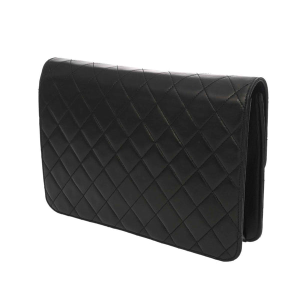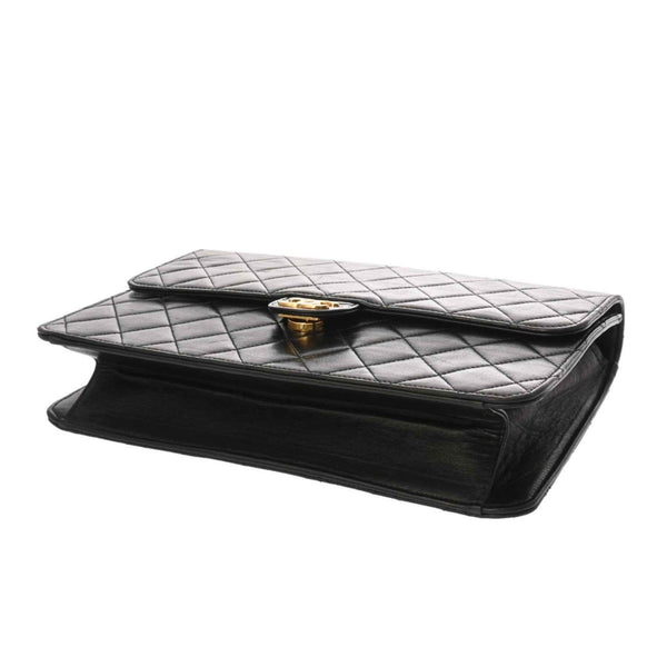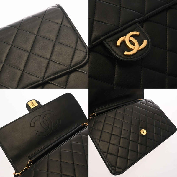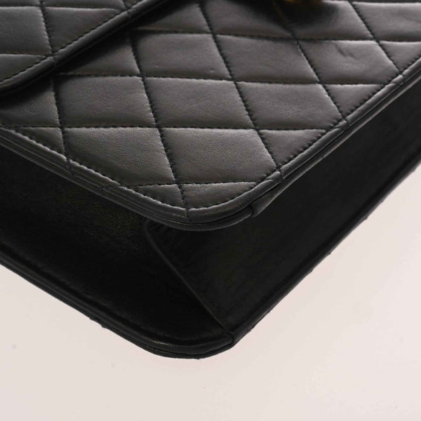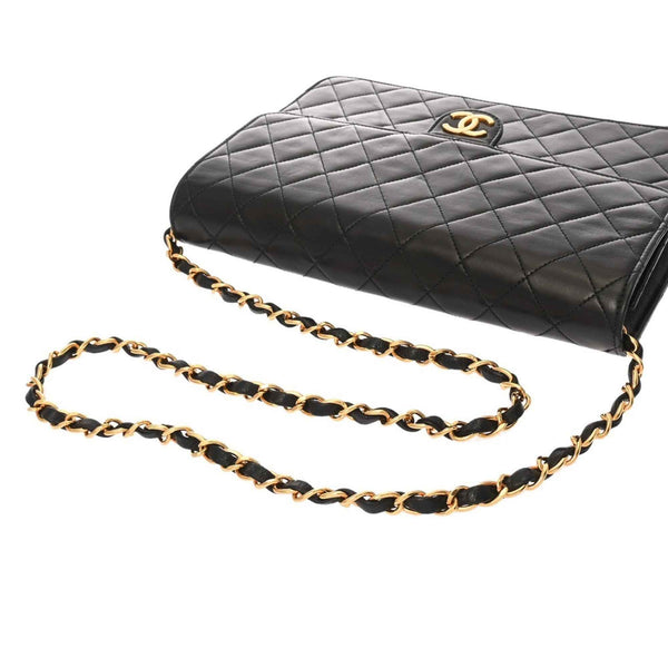 CHANEL Matelasse Push Lock Chain Shoulder Bag, 25cm, Black, Women\'s Lambskin