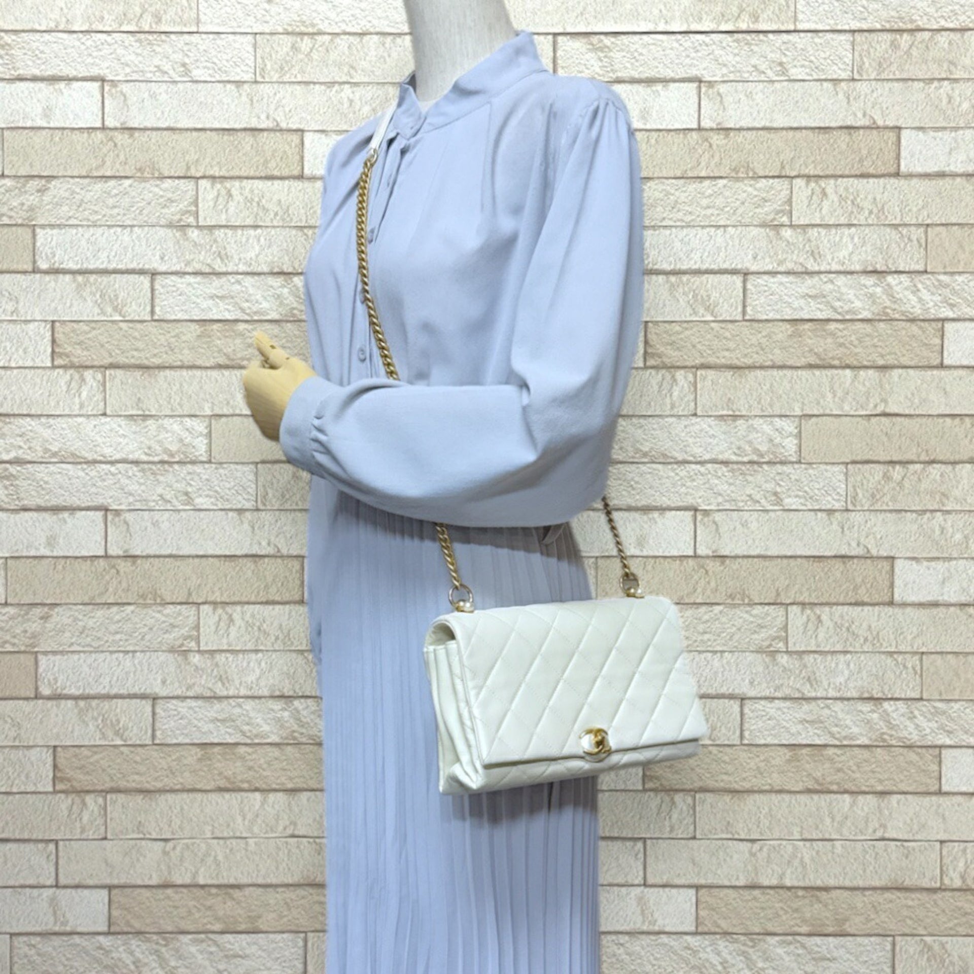 Chanel Matelasse Shoulder Bag Leather White Women\'s CHANEL Chain