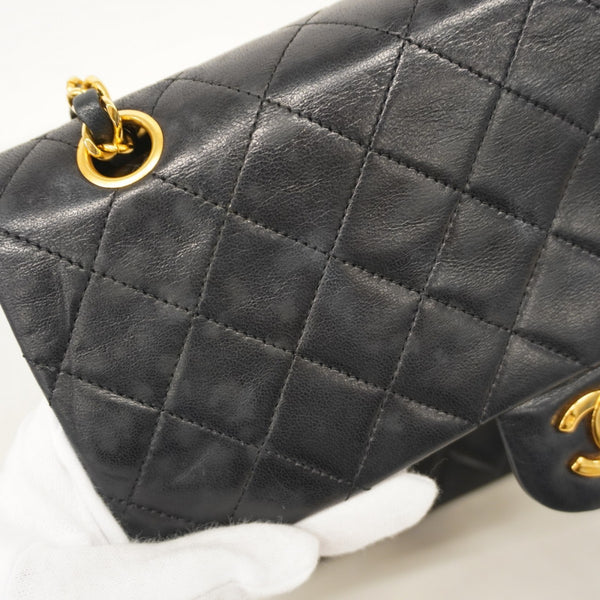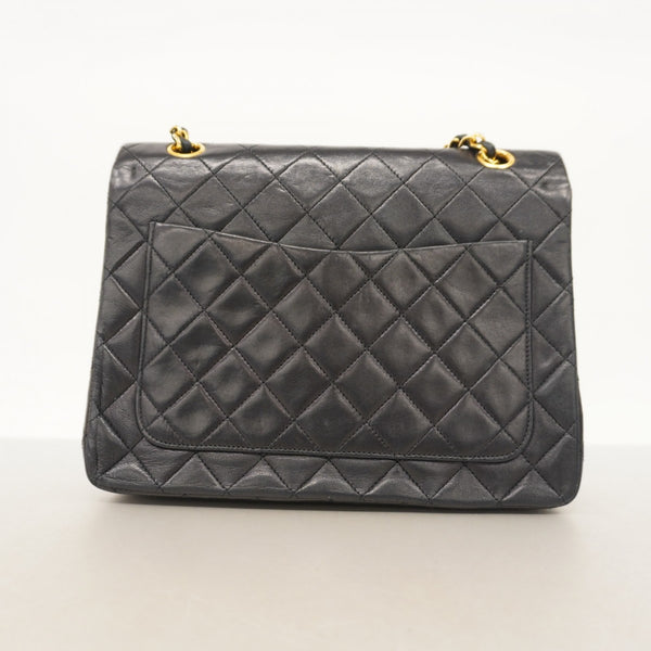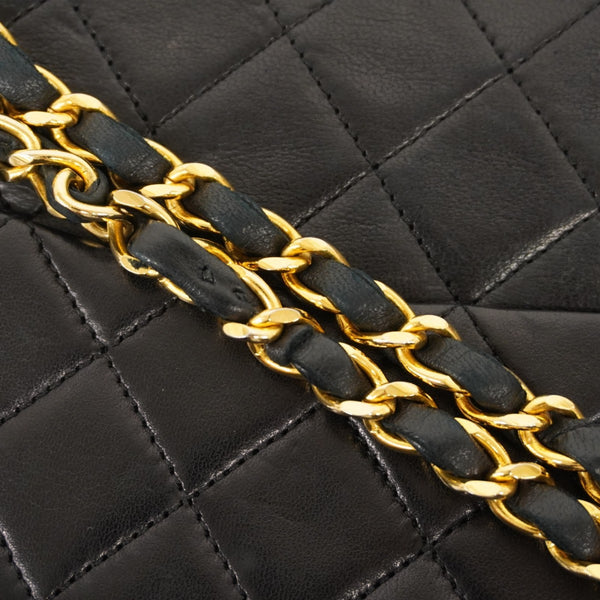Chanel Matelasse Shoulder Bag with Double Flap and Chain, Lambskin, Black, Women\'s