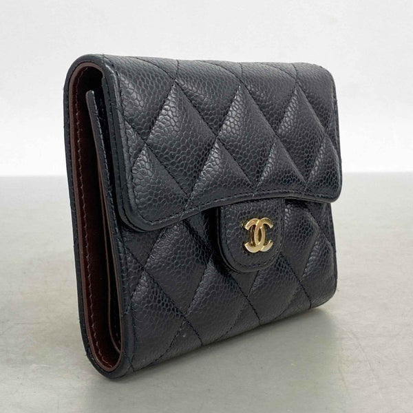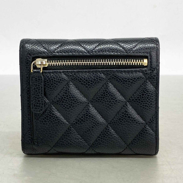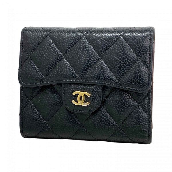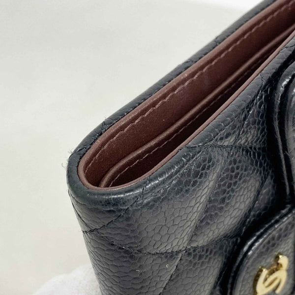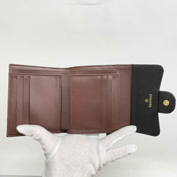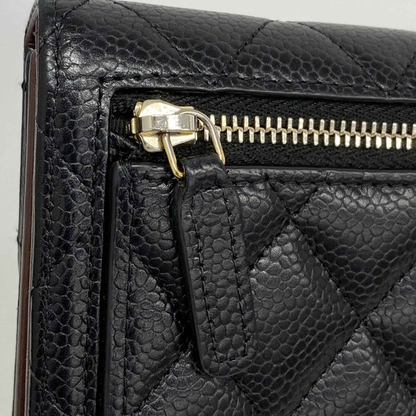 Chanel Matelasse Tri-fold Long Wallet in Caviar Leather, Black, Women\'s