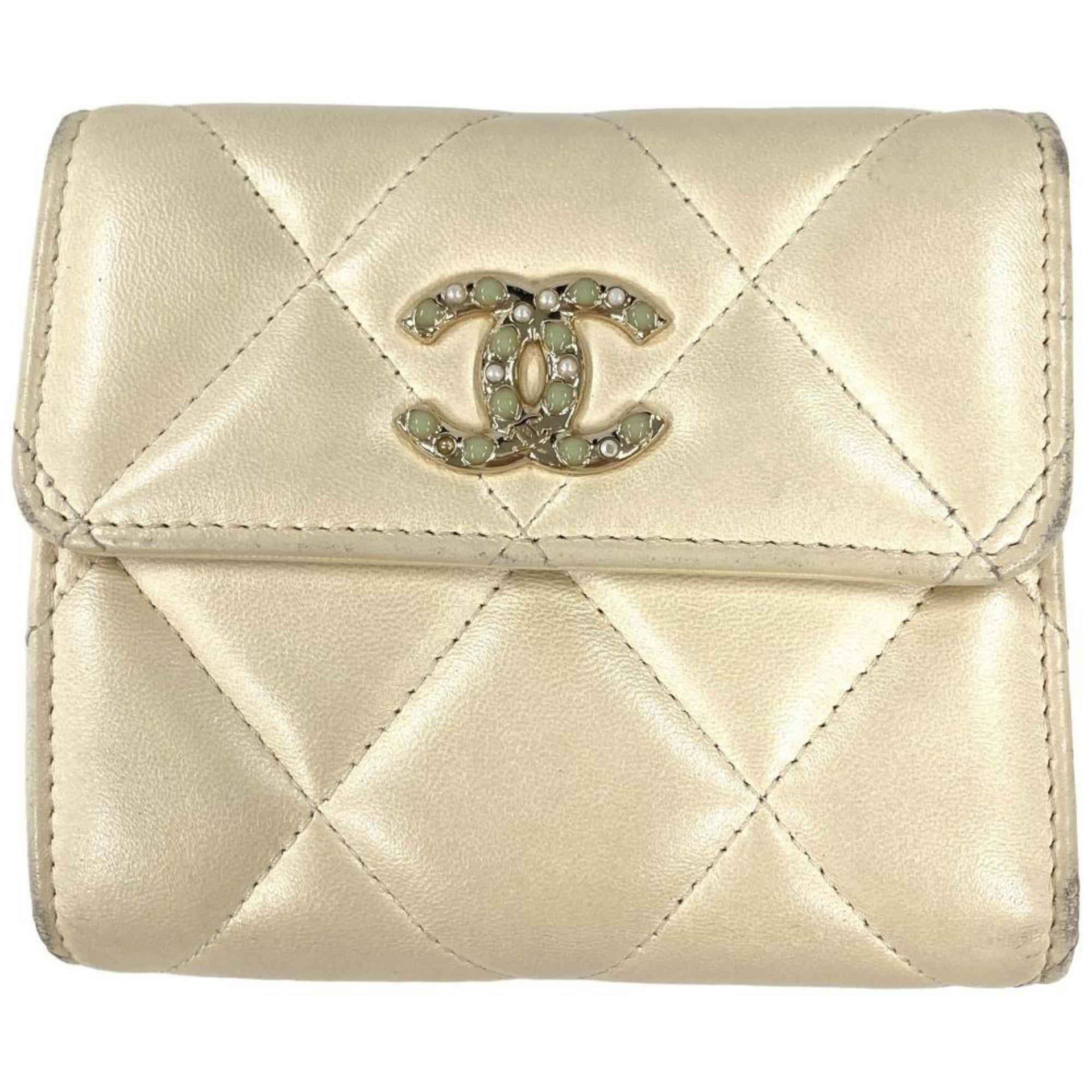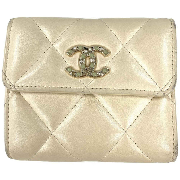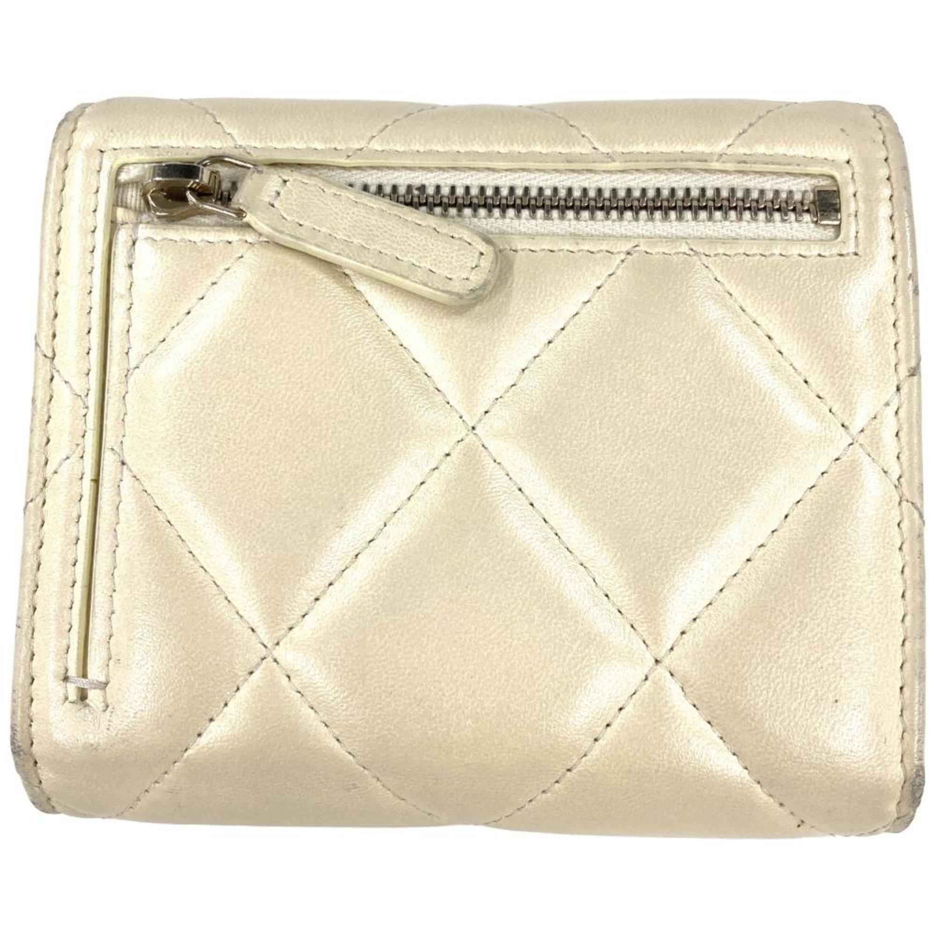 CHANEL Matelasse Tri-fold Wallet Lambskin AP2809 White Coco Pearl Women\'s