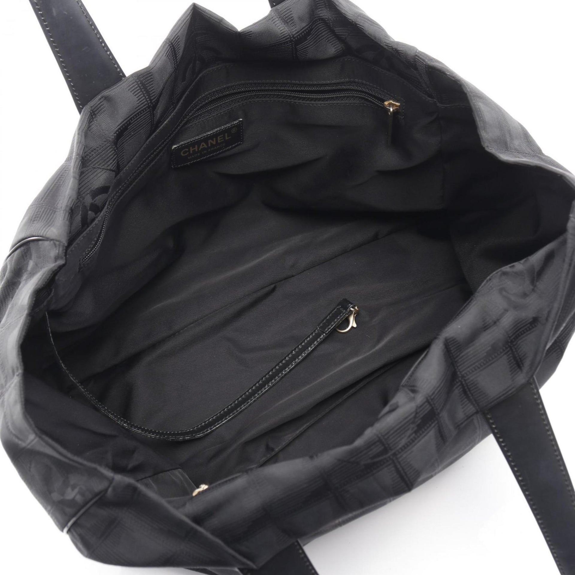 CHANEL New Travel Line MM Tote Bag, Leather, Nylon Canvas, Women\'s, Black, A15991