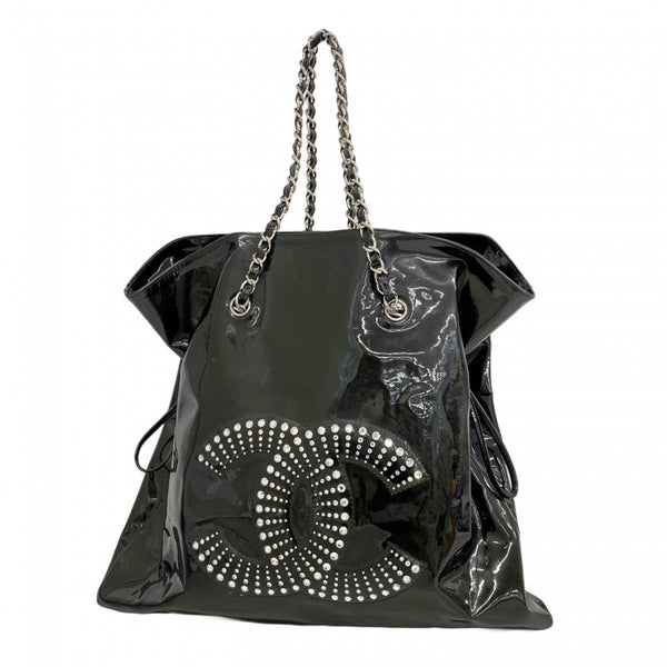 Chanel Patent Leather Black Chain Tote Bag for Women