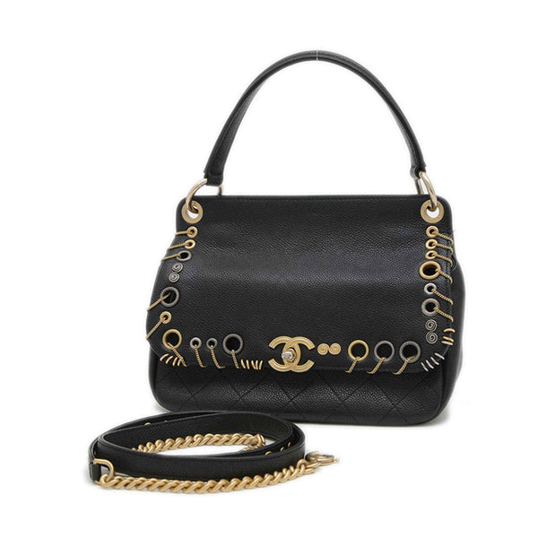 Chanel Piercing Hand Shoulder Bag in Black Caviar Skin