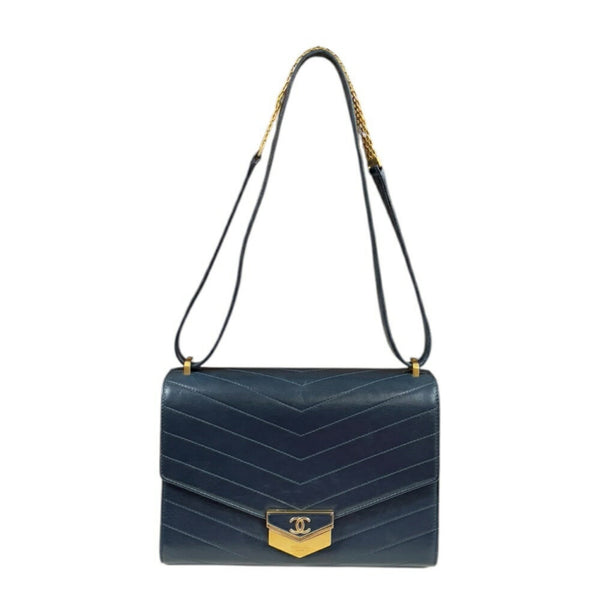 Chanel V-stitch shoulder bag leather navy women\'s CHANEL