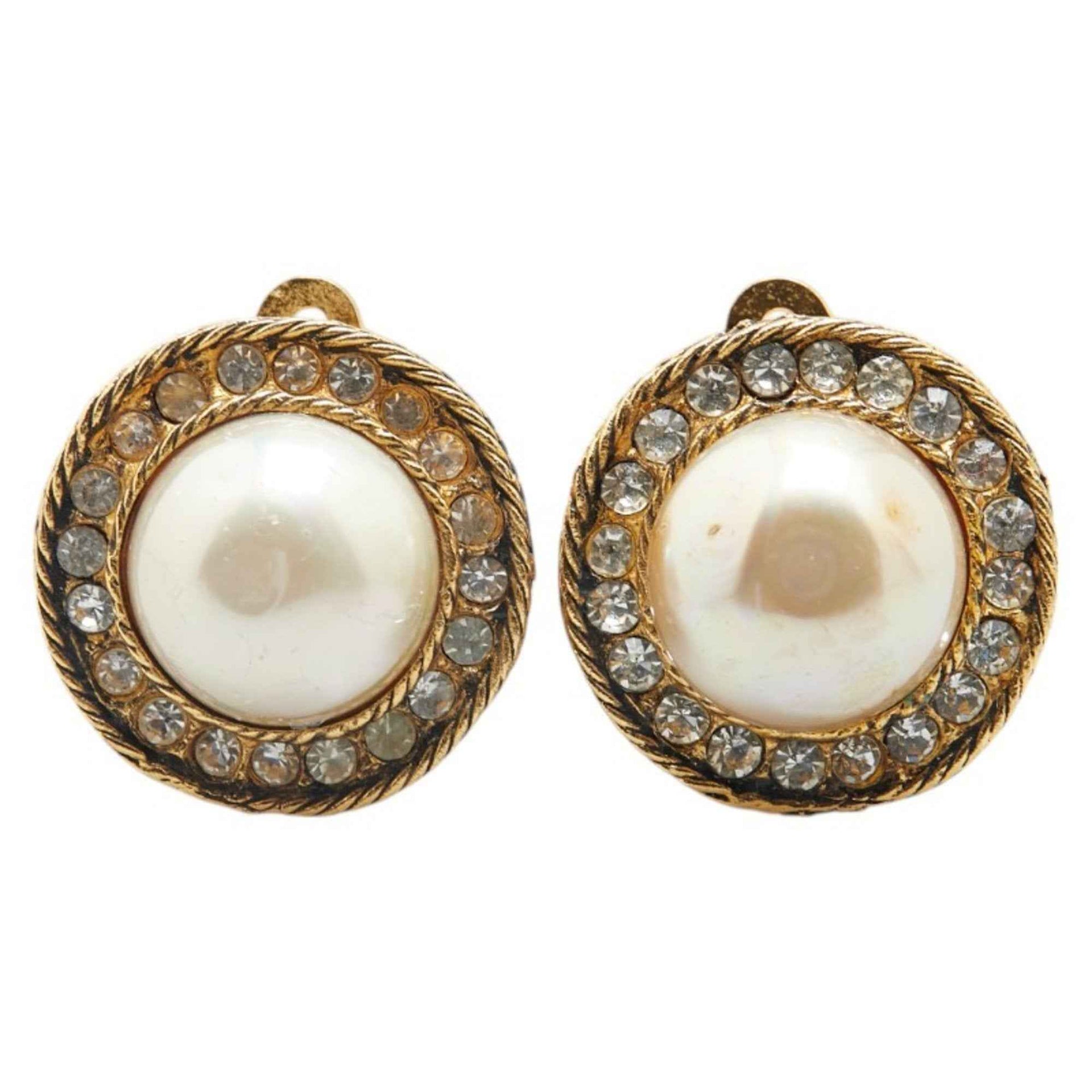CHANEL Vintage 1982 Rhinestone Earrings, Gold Plated with Faux Pearls, Women\'s