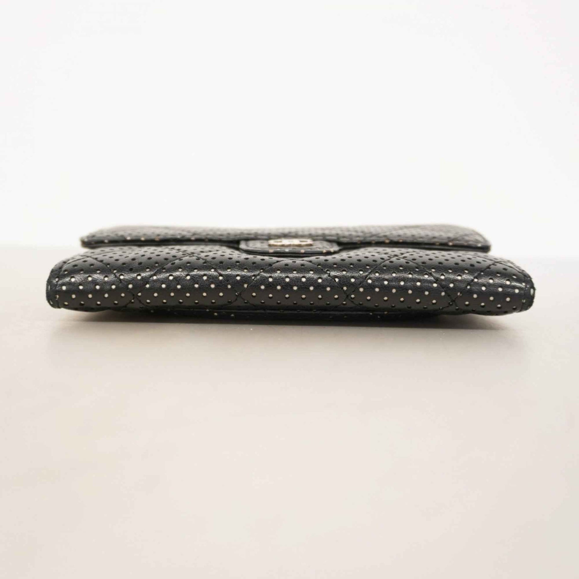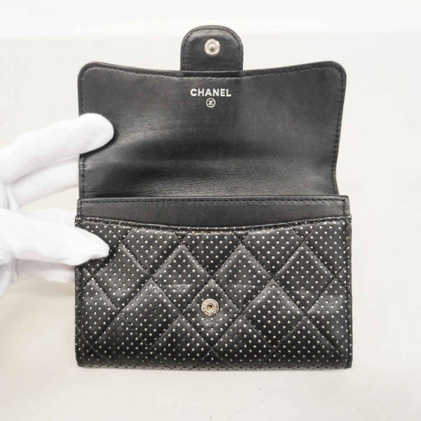 Chanel wallet/coin case, Matelasse perforated lambskin, black, for women