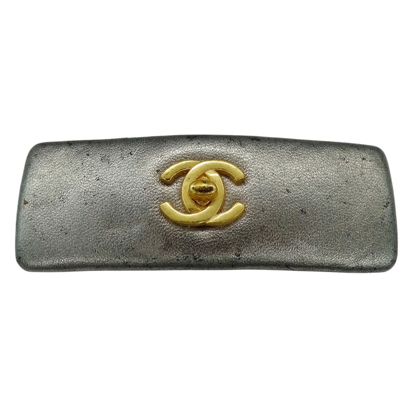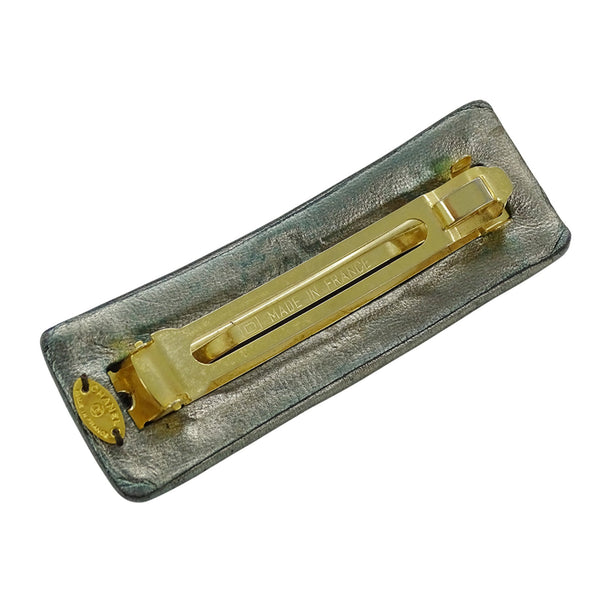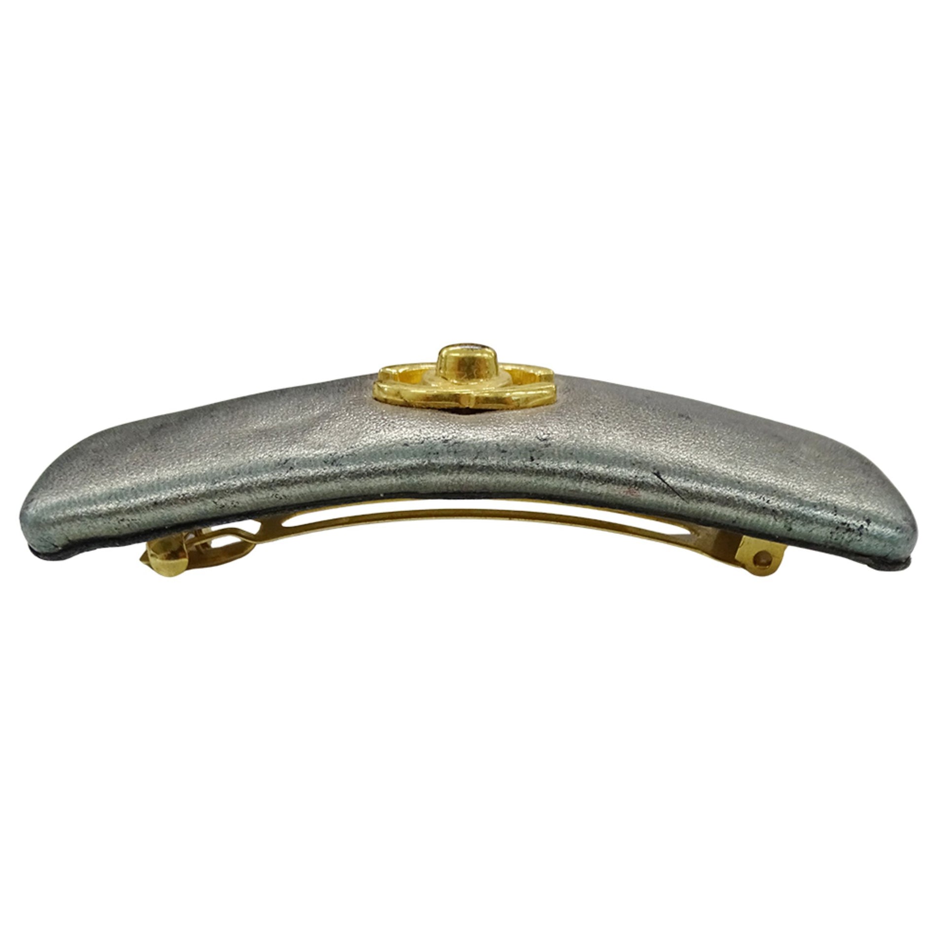 CHANEL Women\'s Barrette, Leather Hair Clip with Turn Lock and Coco Mark, Metallic Gold Hardware