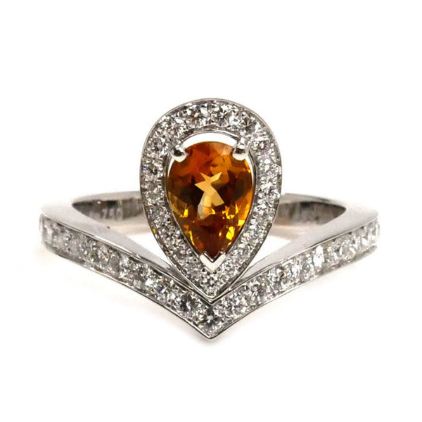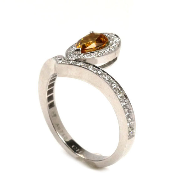 Chaumet 18K White Gold Josephine Aigrette Citrine and Diamond Ring, Size 14, 54cm, 5.3g, Women\'s
