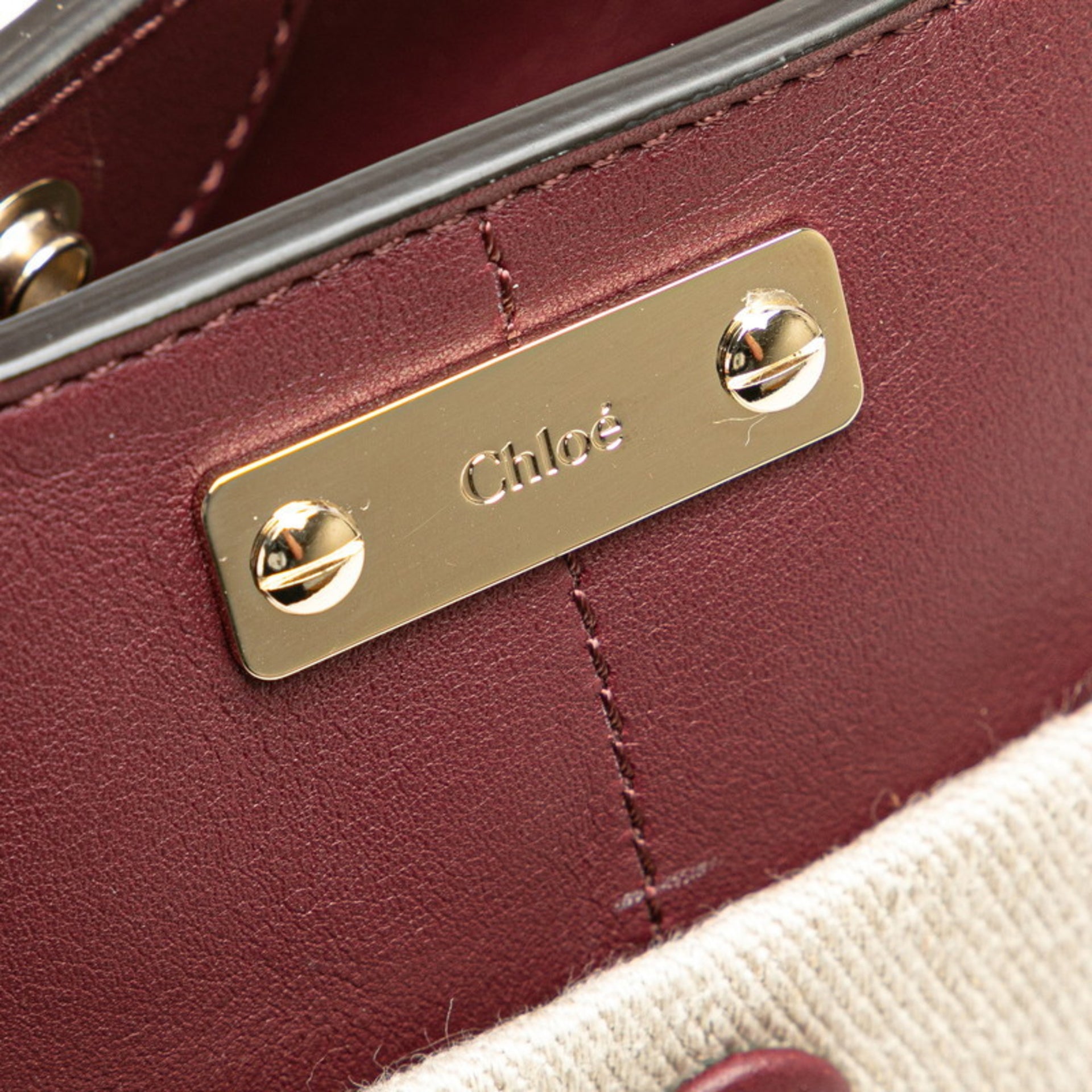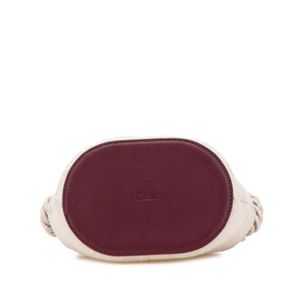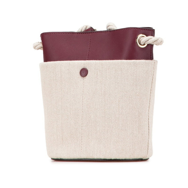 Chloé Chloe KEY Bucket Bag, Small, Crossbody Shoulder Beige, Wine Red, Leather, Linen, Women\'s