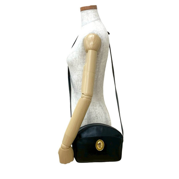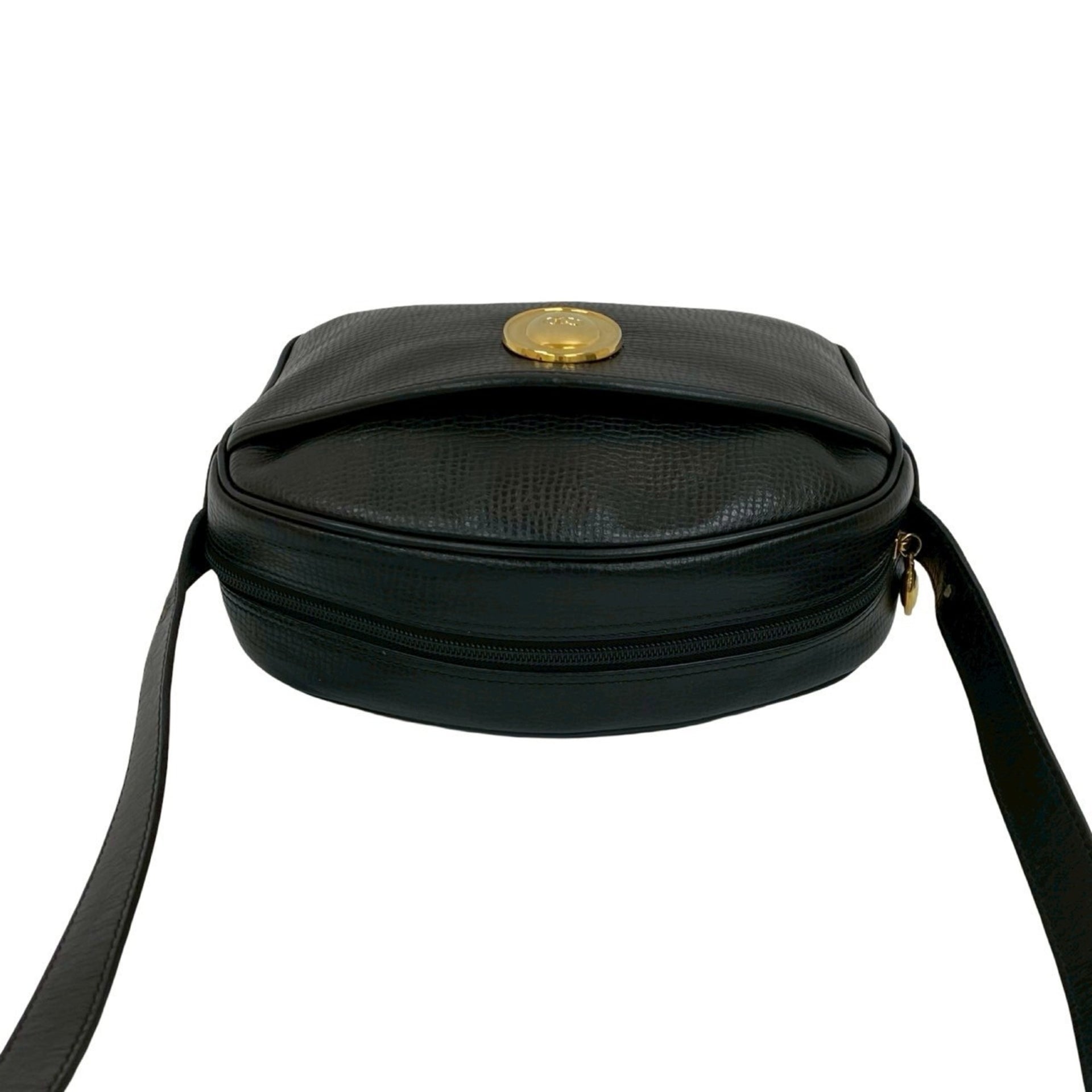 Christian Dior CD logo hardware leather shoulder bag pochette black 05881