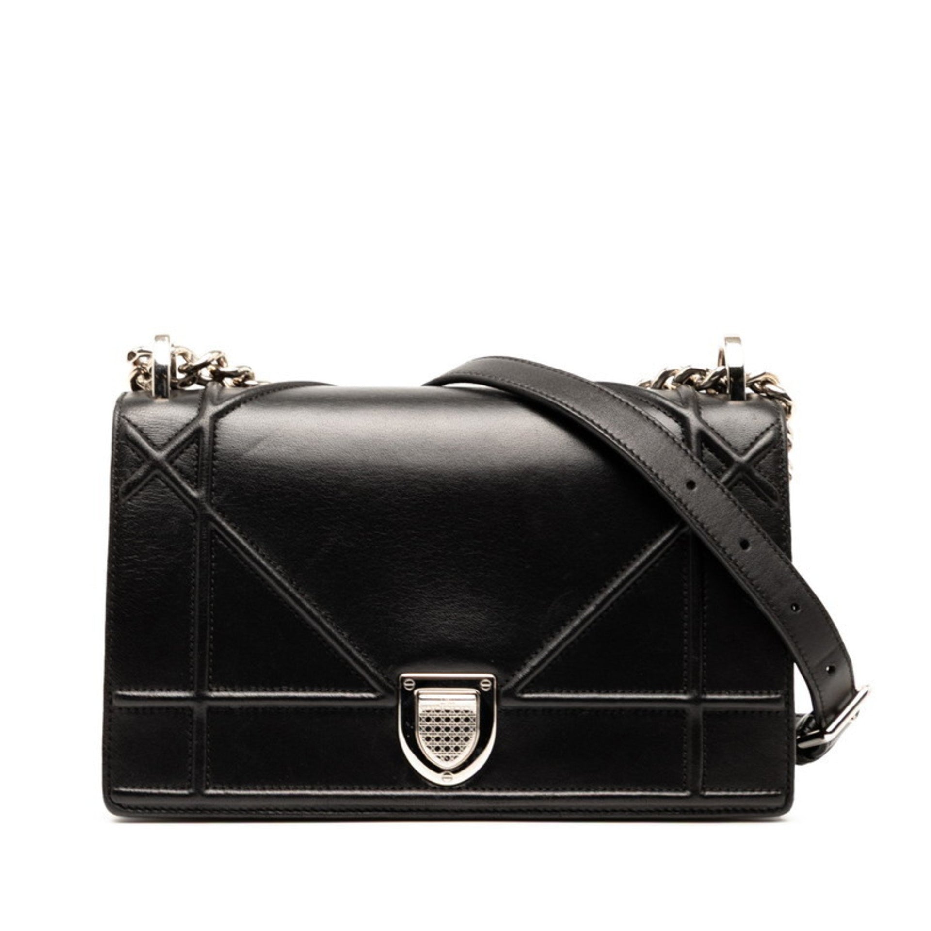 Christian Dior Dior Diorama Chain Shoulder Bag Black Leather Women\'s