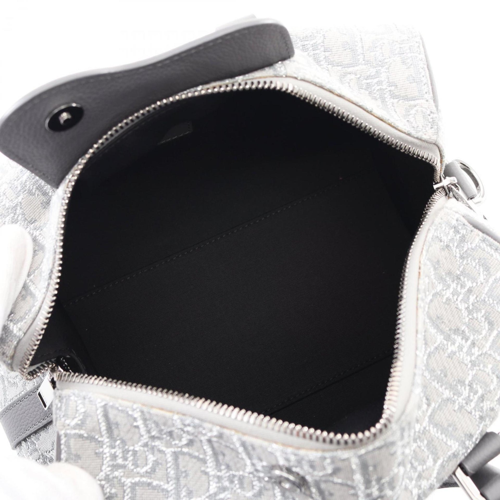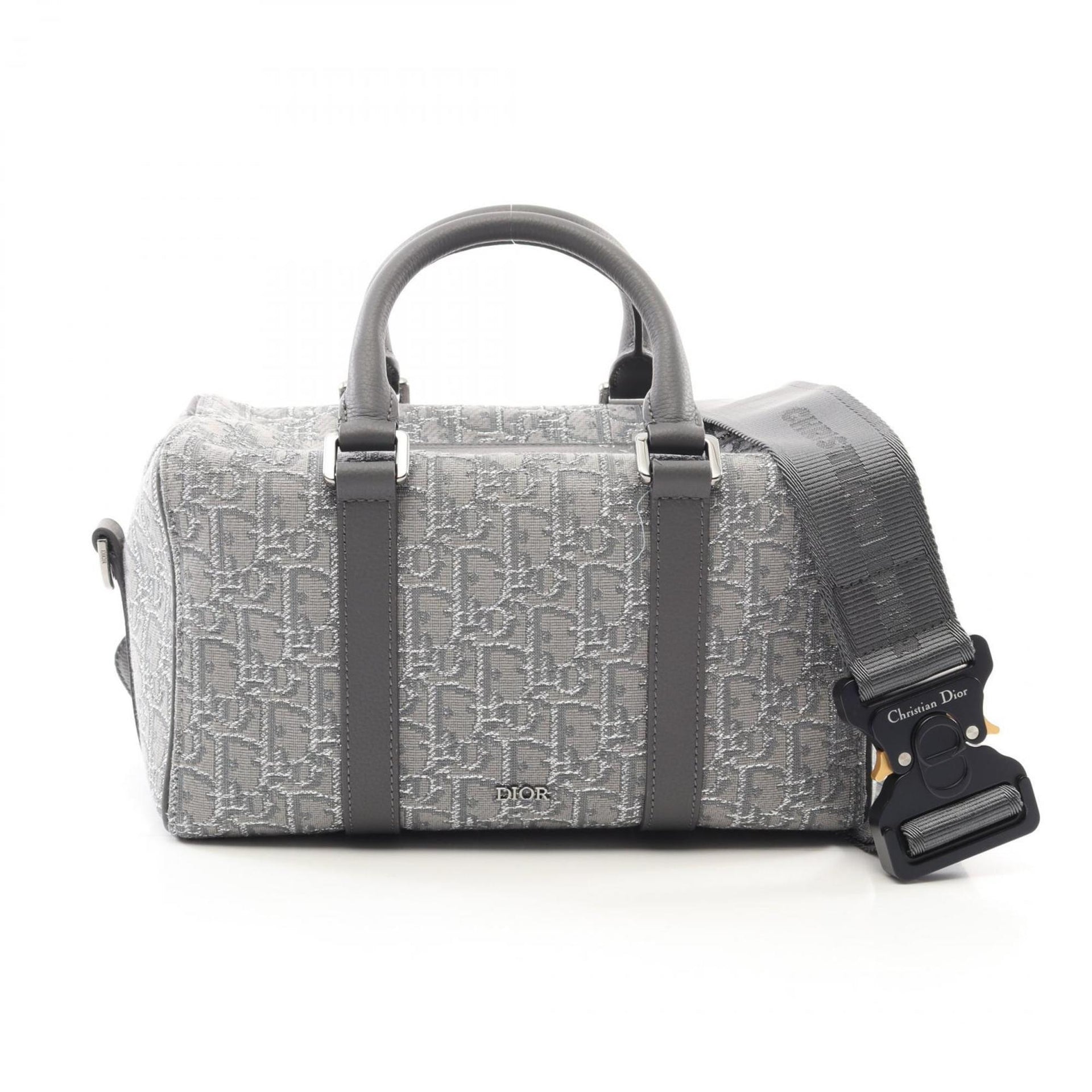 Christian Dior Dior LINGOT26 Lango Oblique Handbag, Canvas and Leather, Men\'s, Gray/Silver