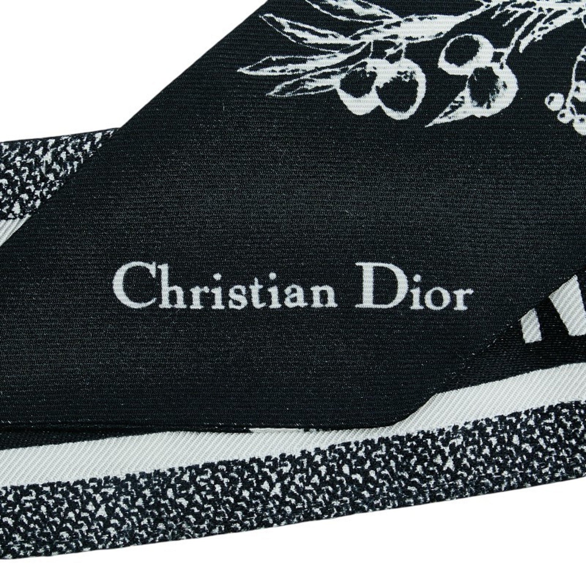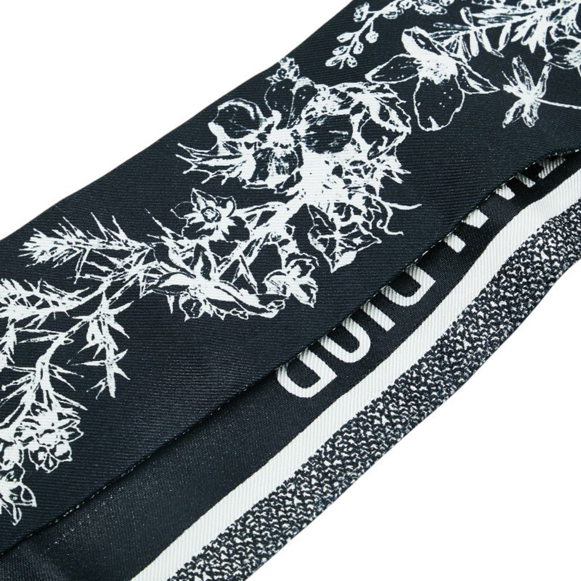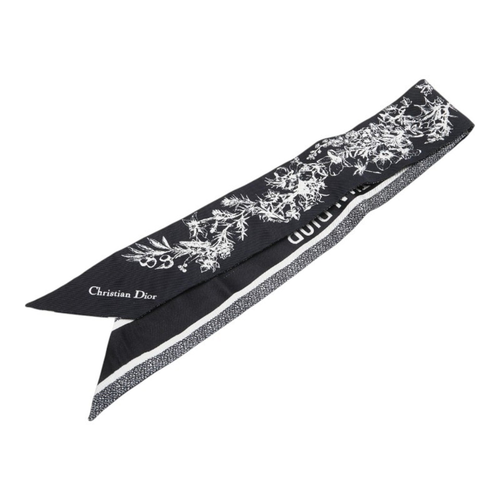 Christian Dior Dior Mitzah Toile de Jouy Flower Scarf Black White Silk Women\'s