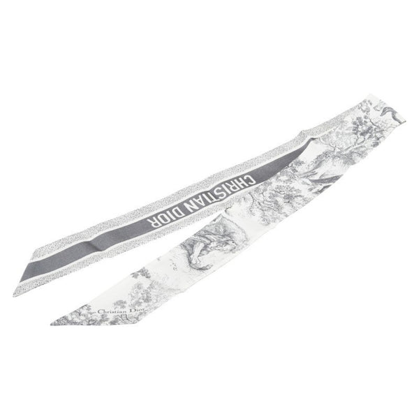 Christian Dior Dior Mitzah Toile de Jouy Sauvage Scarf, Gray and White Silk, Women\'s,