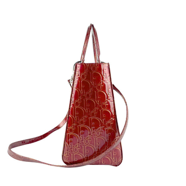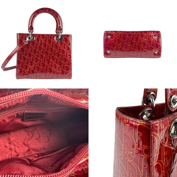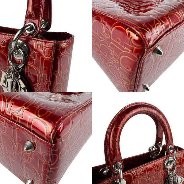 Christian Dior Lady handbag/shoulder bag in patent leather, red and silver, women\'s z6010
