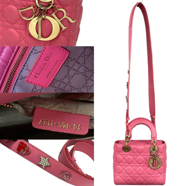 Christian Dior My Lady Lambskin Leather 2-Way Handbag/Shoulder Bag, Pink, 35711