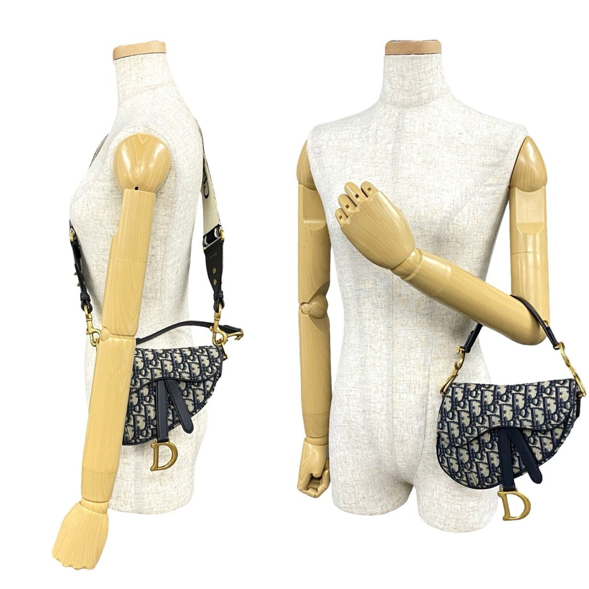Christian Dior Saddle Bag Oblique Trotter Leather 2-Way Shoulder Bag/Handbag Navy 10858
