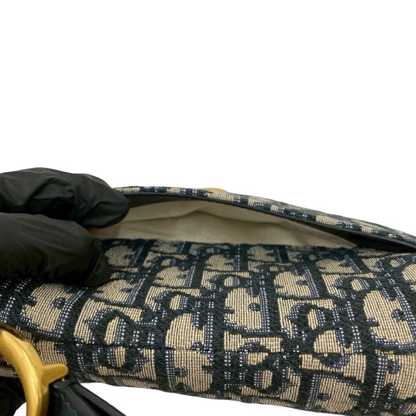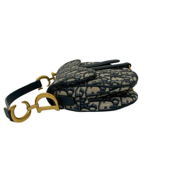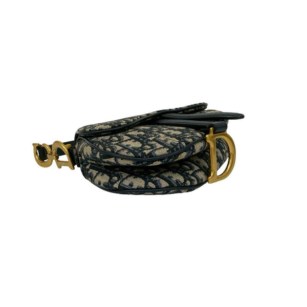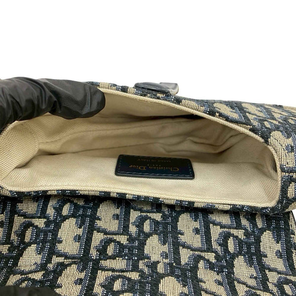 Christian Dior Saddle Bag, Trotter Pattern, Leather and Canvas, 2-Way Handbag/Shoulder Navy, 13183