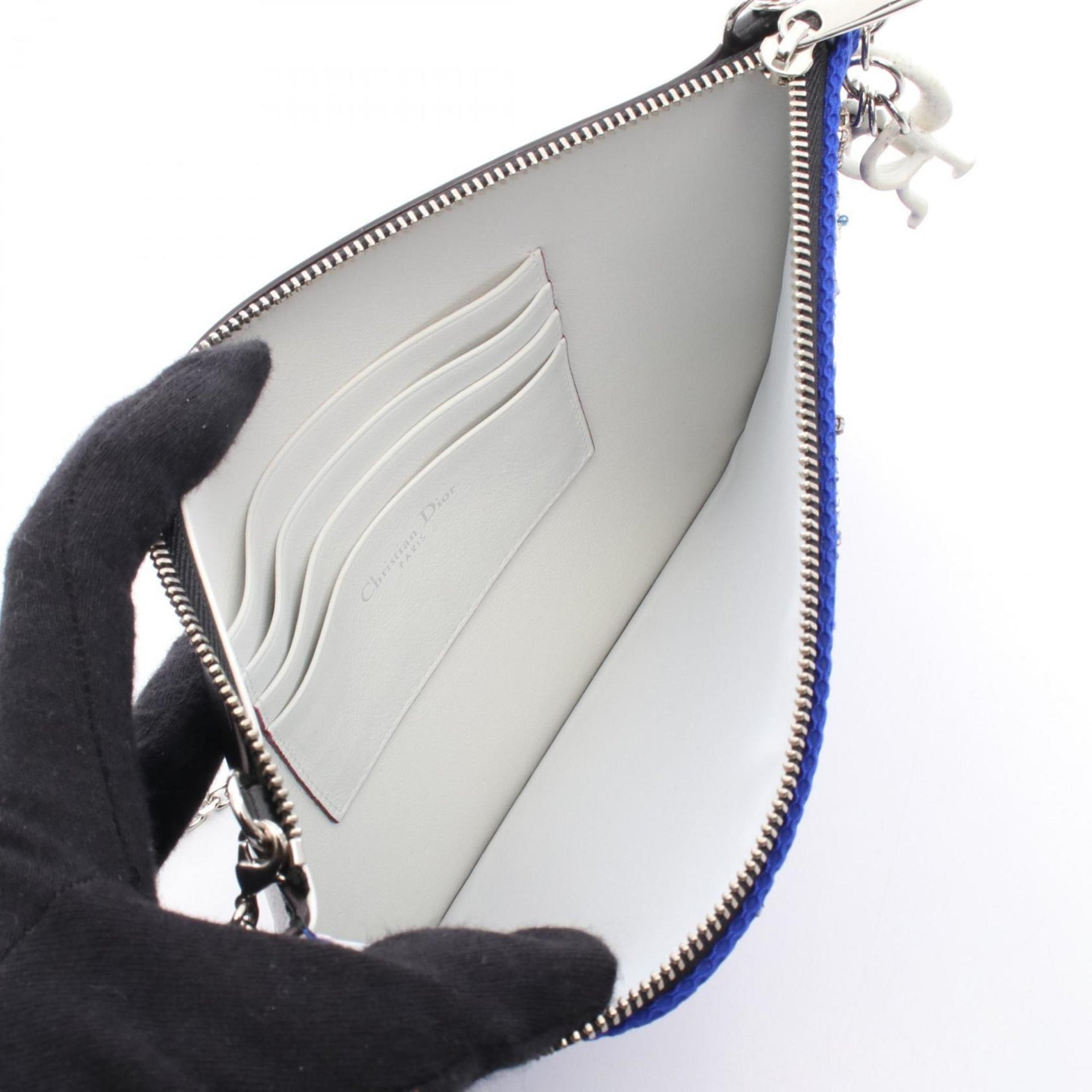 Christian Dior shoulder bag, leather and fabric, women\'s, blue black