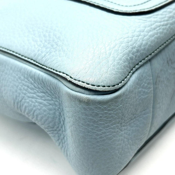 Coach Hampton Leather Tote Bag (8A44) - Light Blue/Brown, Genuine Leather, Shoulder Bag, A4 Size, Women\'s, E5