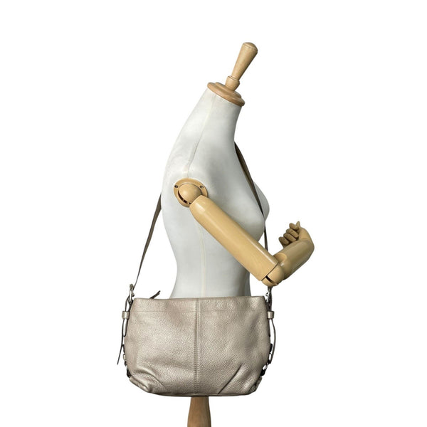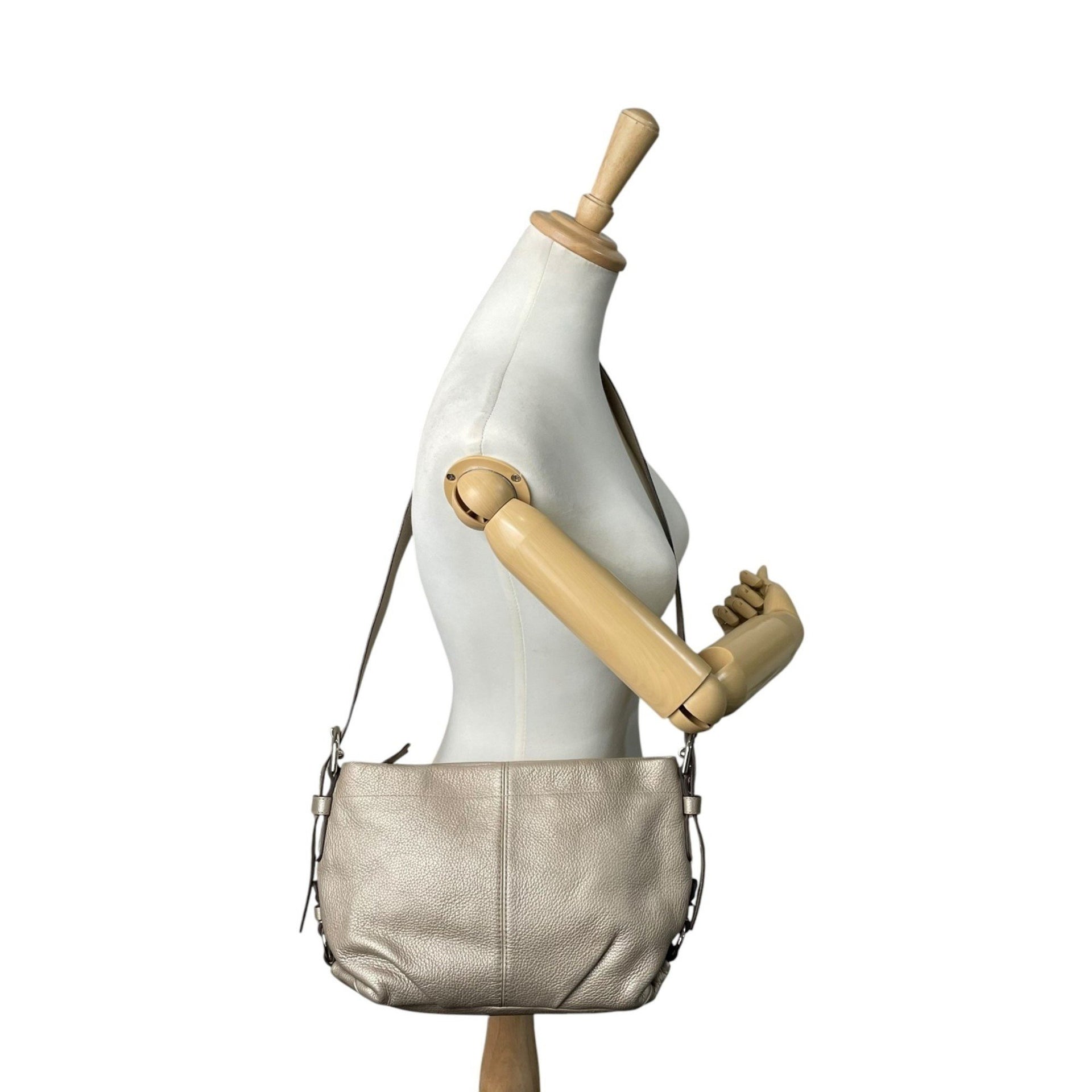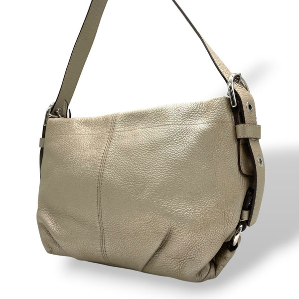 Coach Leather Shoulder Bag F15065 Greige Beige with Silver Hardware, C5