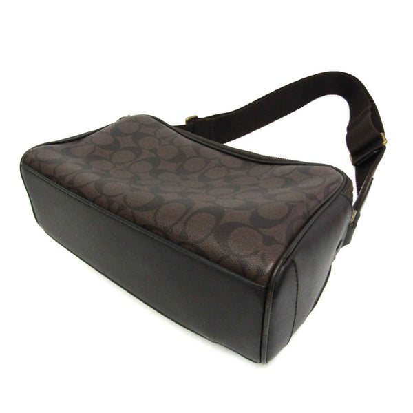 Coach Signature 70865 Women,Men Leather,Coated Canvas Shoulder Bag Dark Brown
