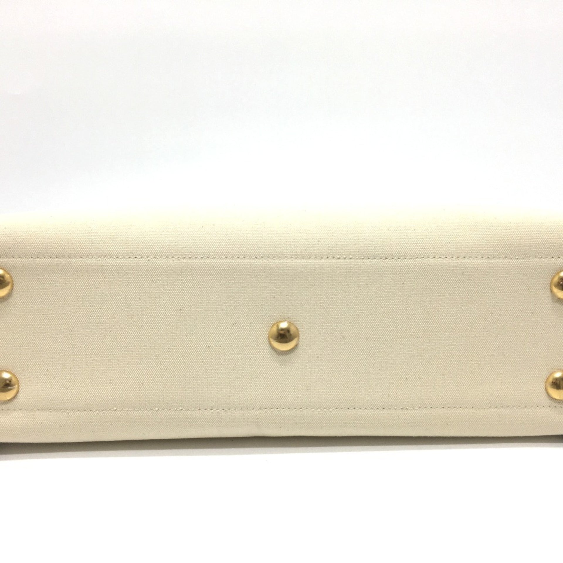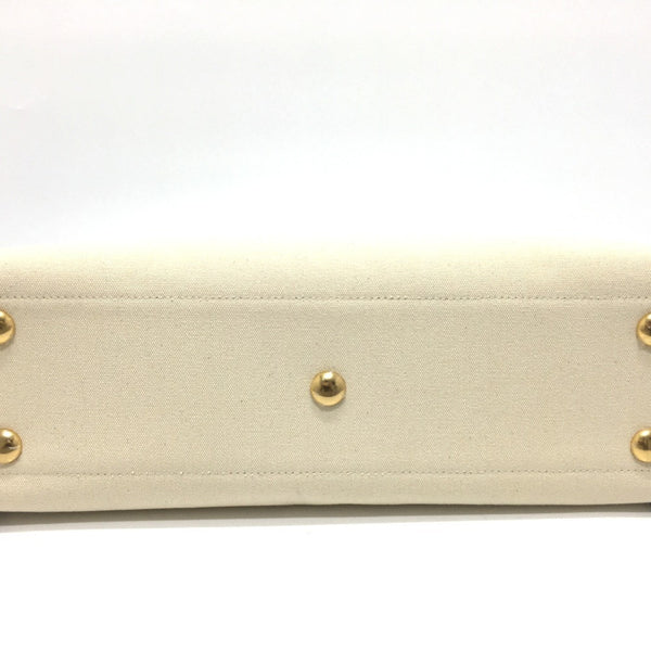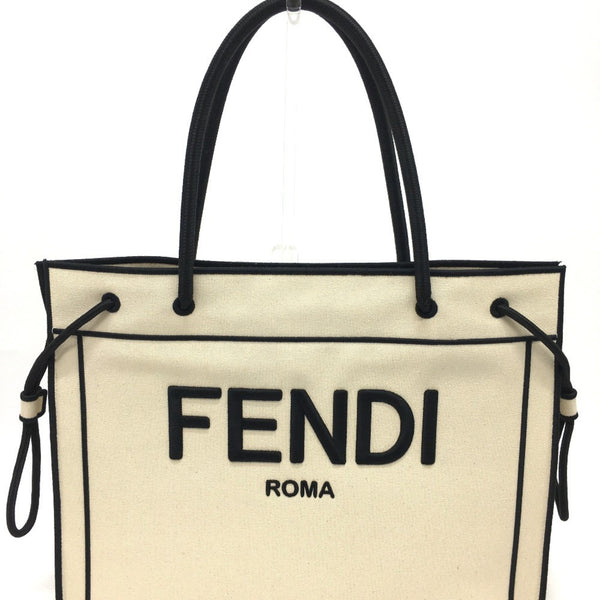 FENDI 8BH379 Logo Roma Shopper Large Tote Bag, Canvas, Women\'s, Grezzo Natural Beige & Black, Like New
