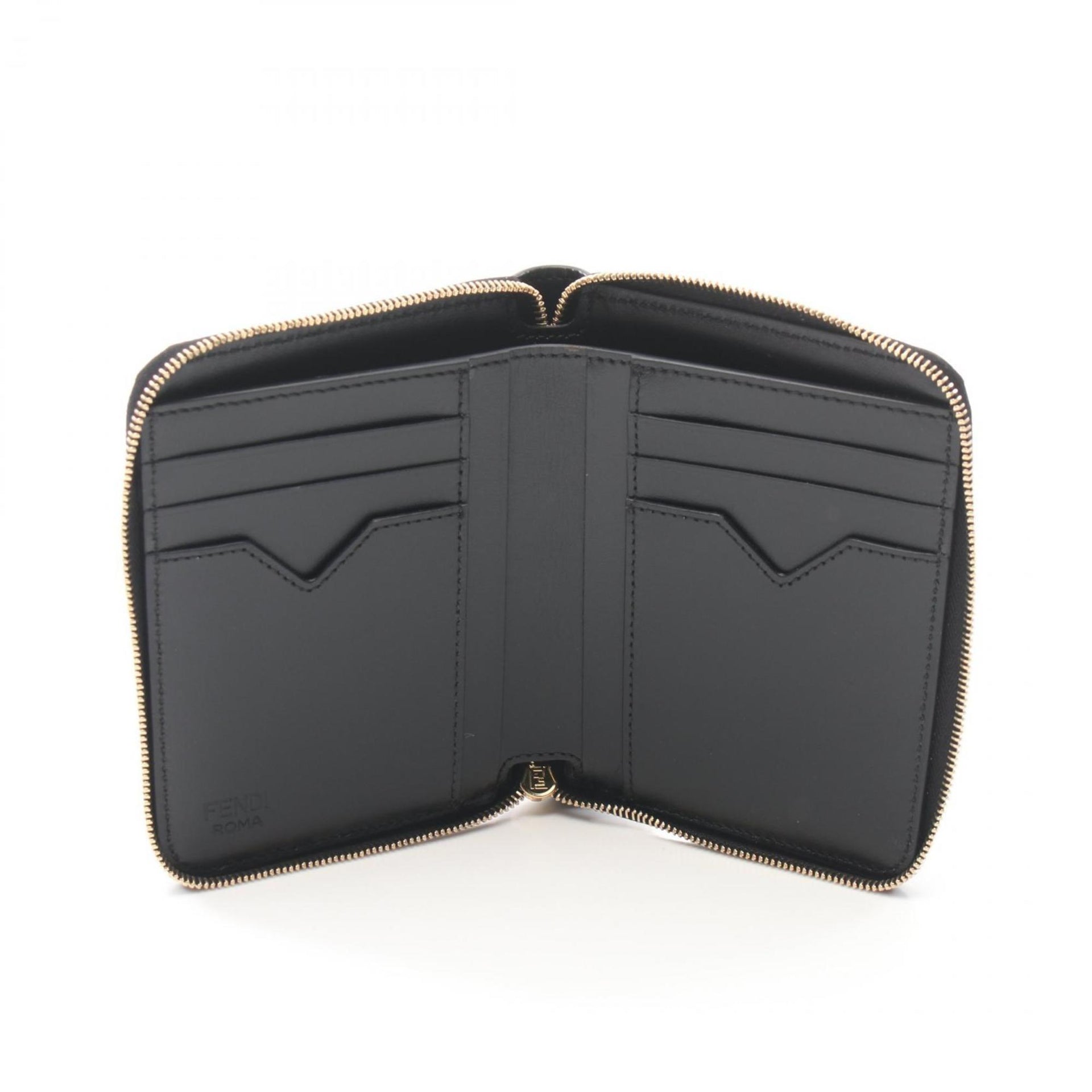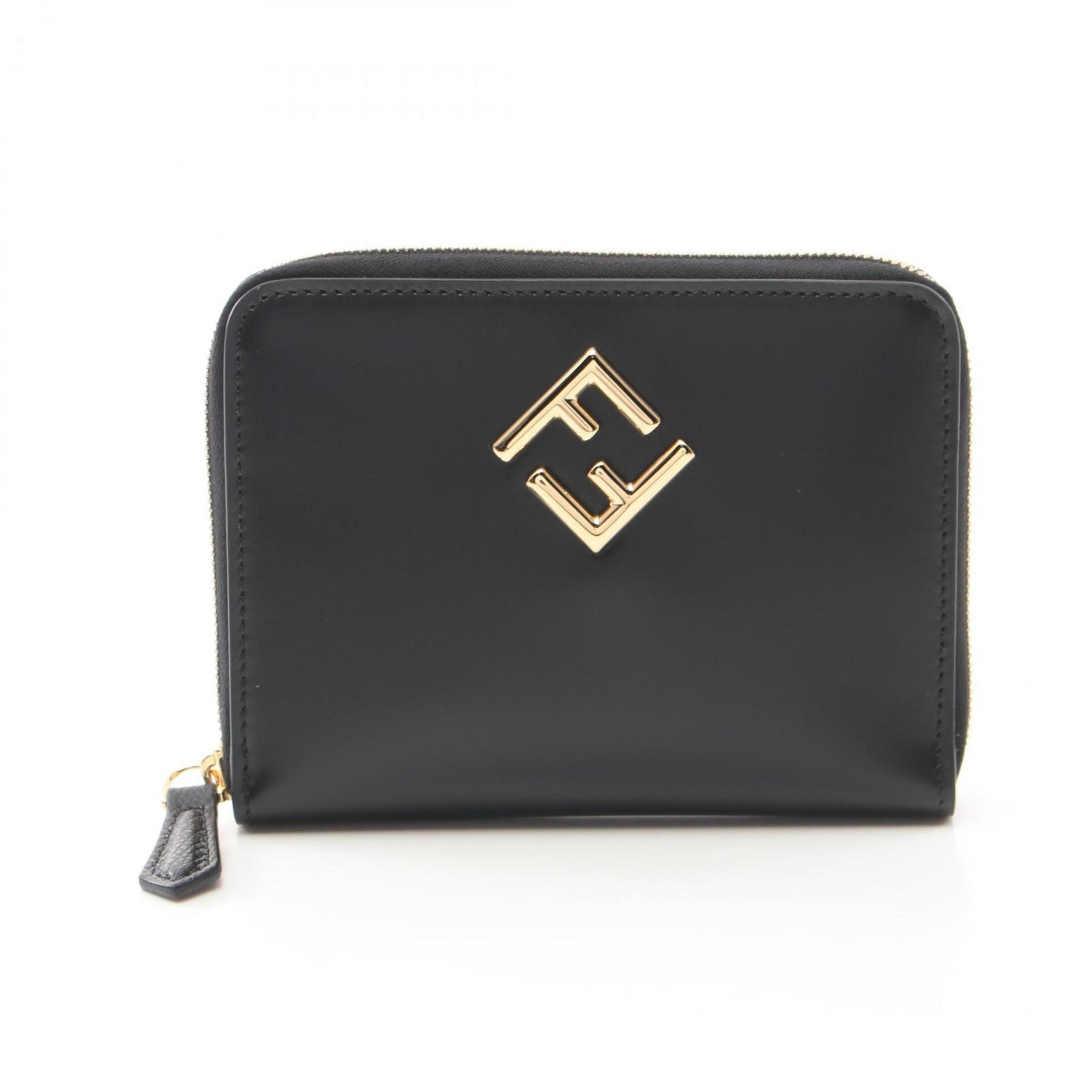 FENDI FF Diamond Round Wallet Leather Women\'s Black 8M0508ALV4F0KUR