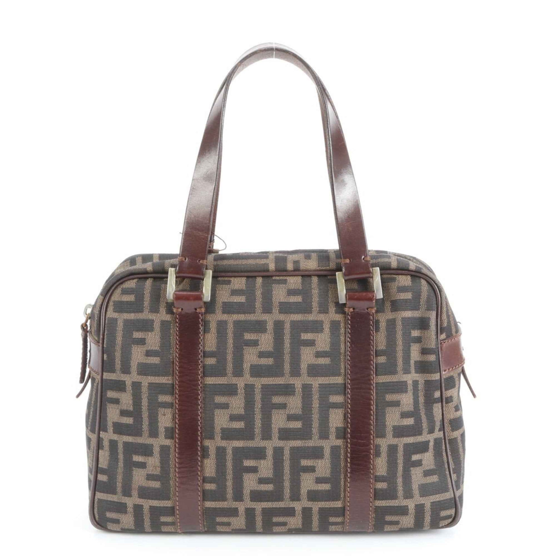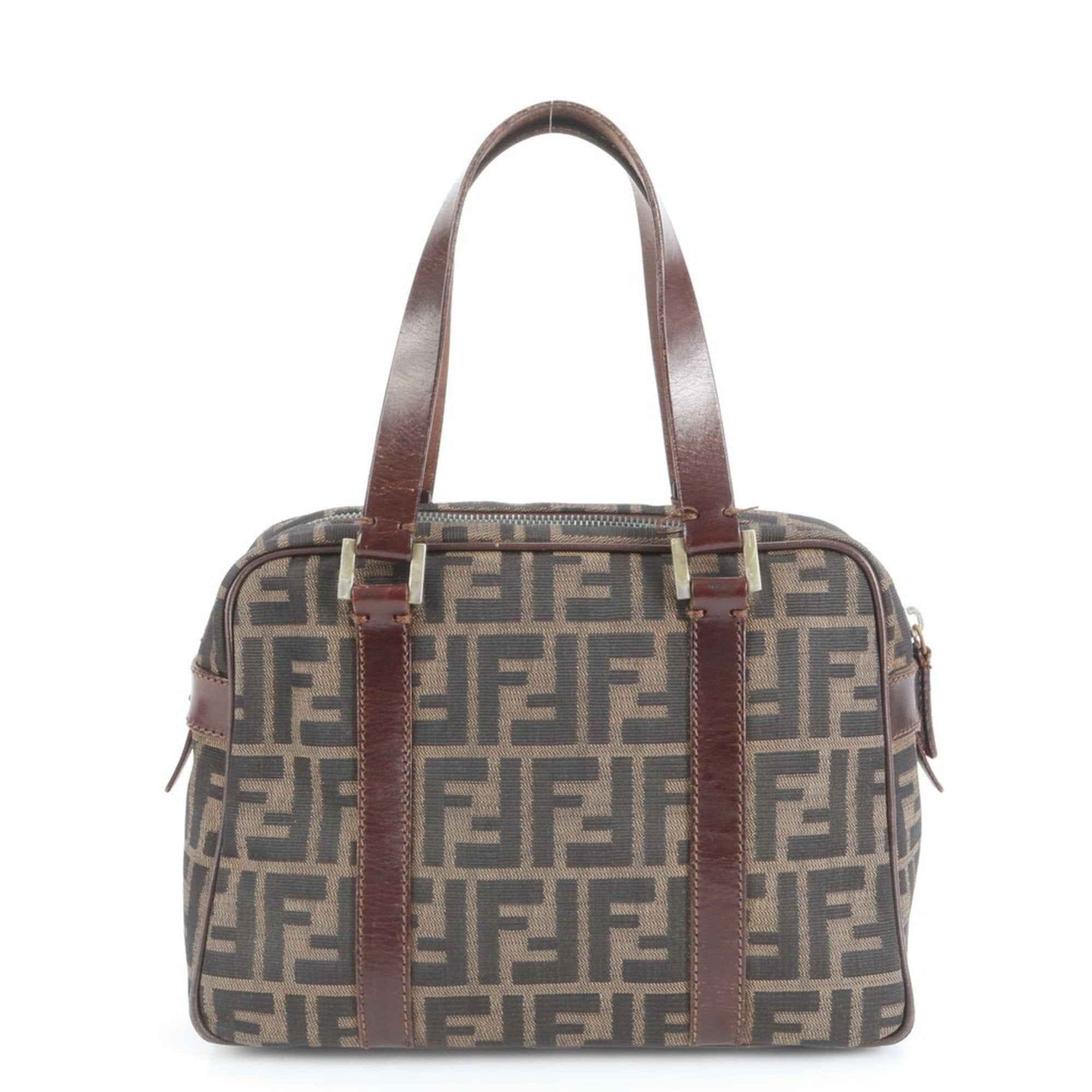 Fendi FF Zucca Mini Boston Leather Handbag Tote Bag Brown Women\'s