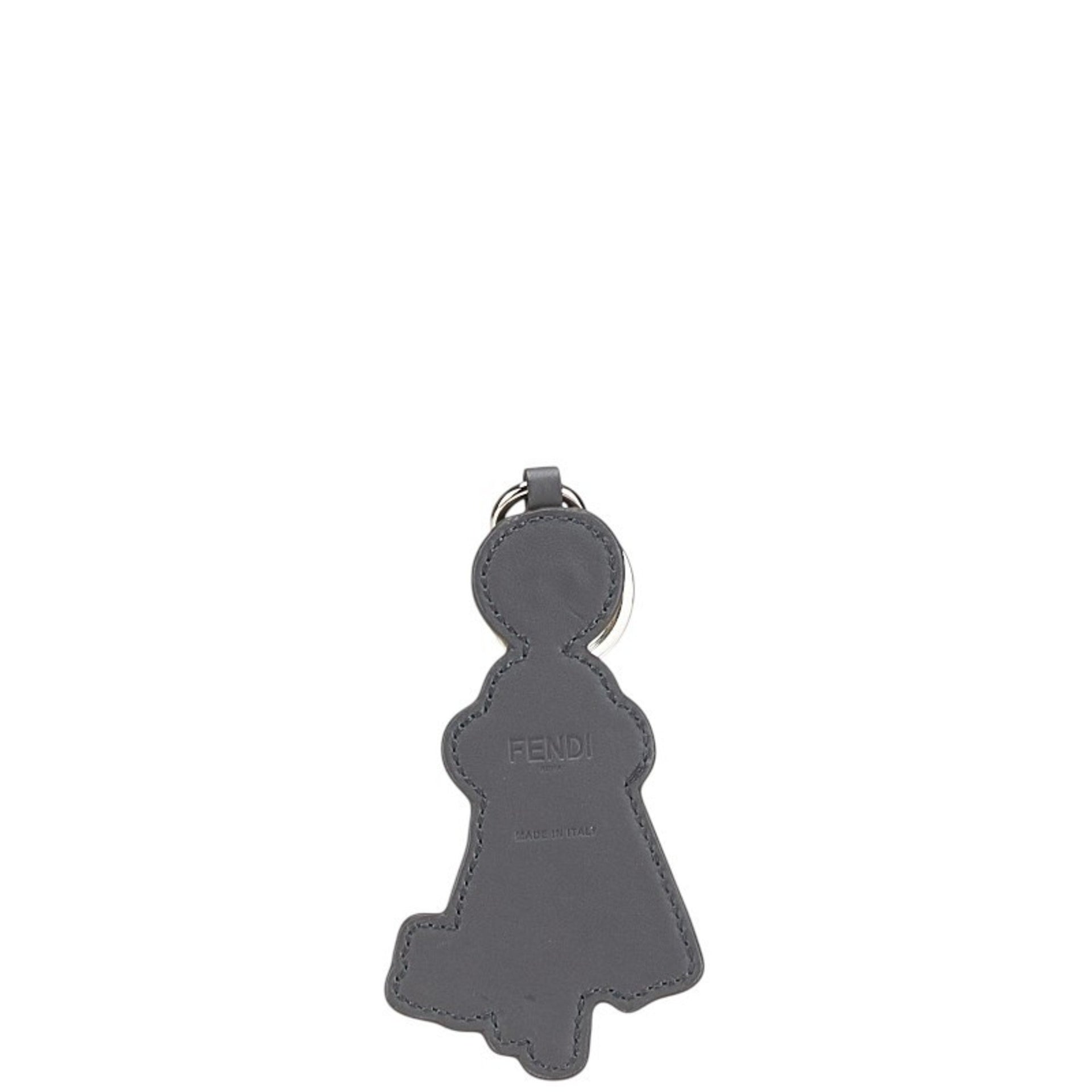 Fendi Key Motif Charm Keychain in Black Multicolor Leather for Women