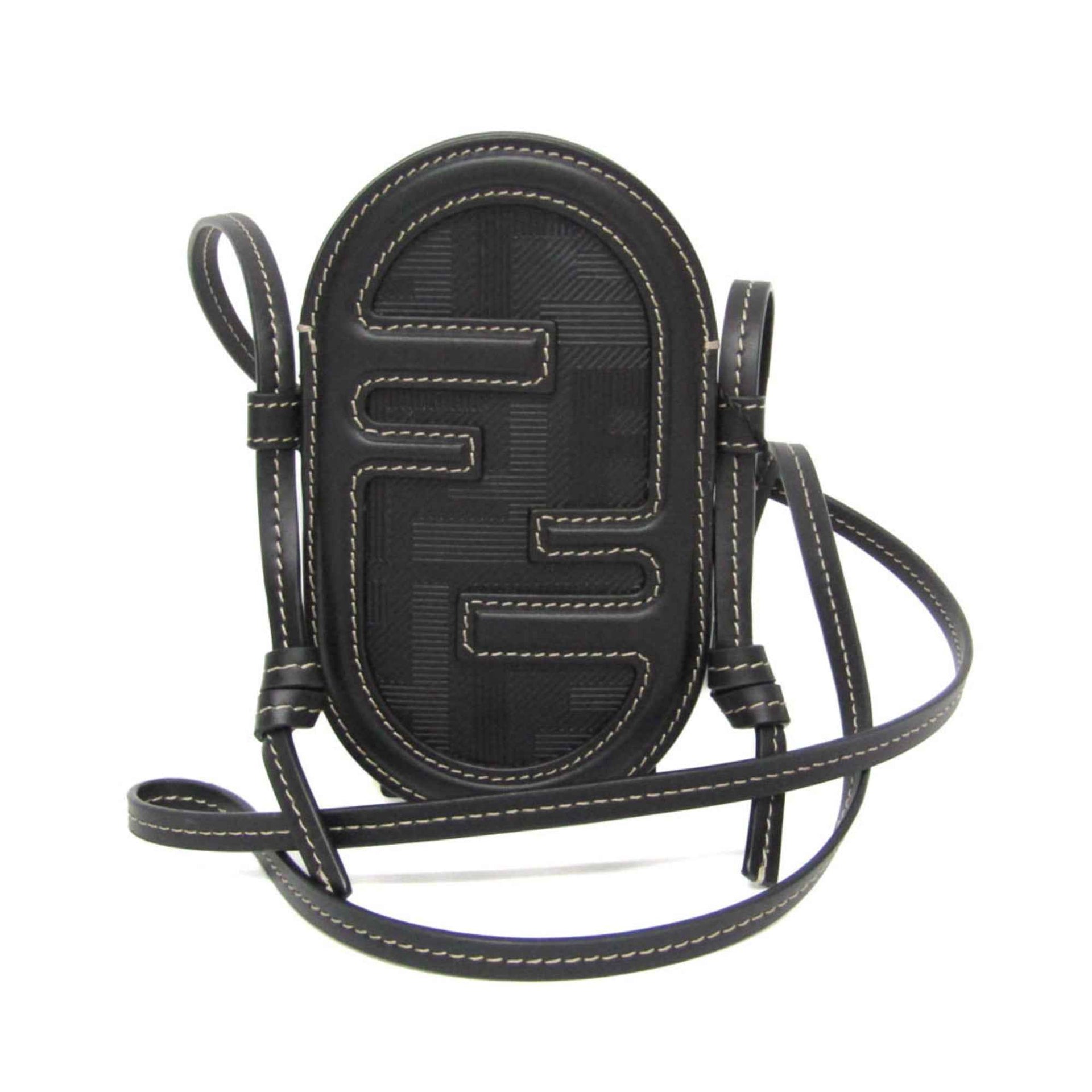 Fendi Olock Mini Shoulder Pouch 7M0345 Women,Men Leather Shoulder Bag Black