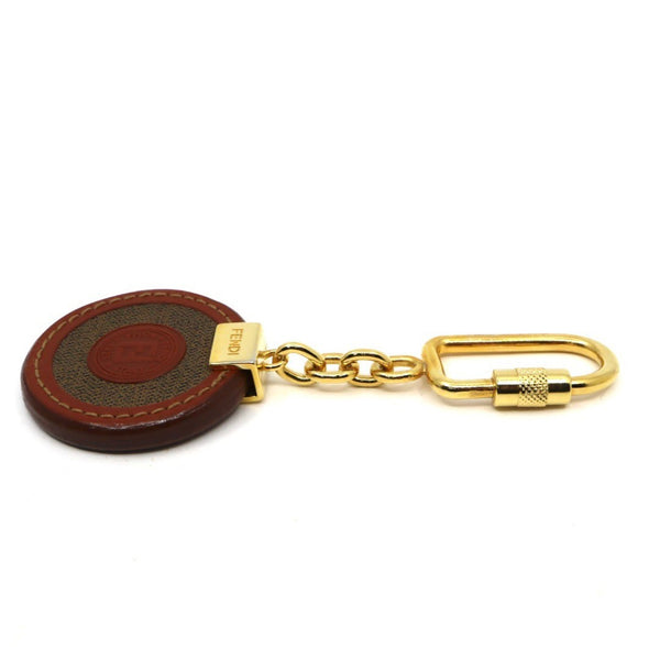 FENDI Pecan Keychain, Leather Key Case with Logo Embossing and Gold Hardware, Men\'s/Women\'s, M5
