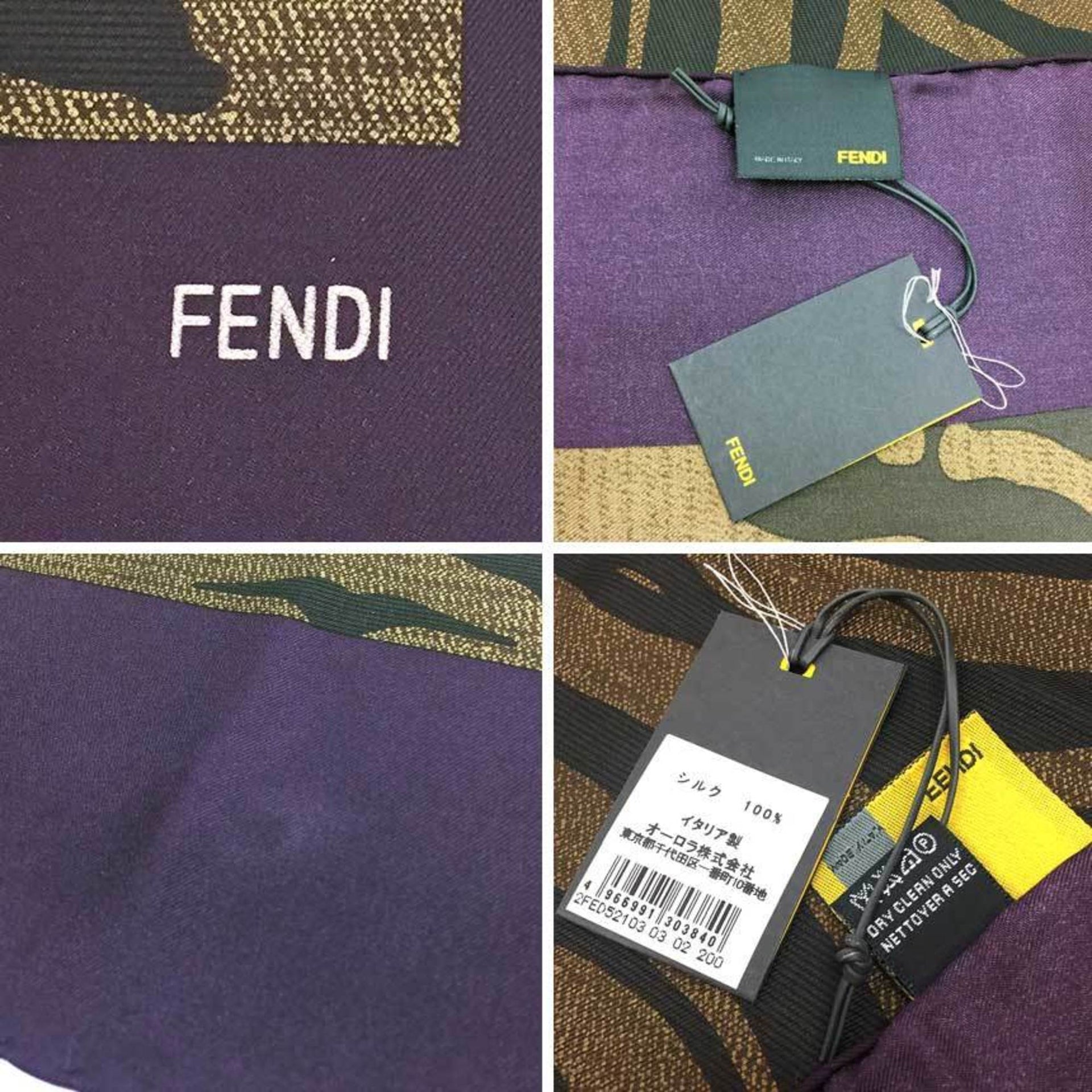 FENDI Scarf Muffler Zebra Print 100% Silk Bordeaux