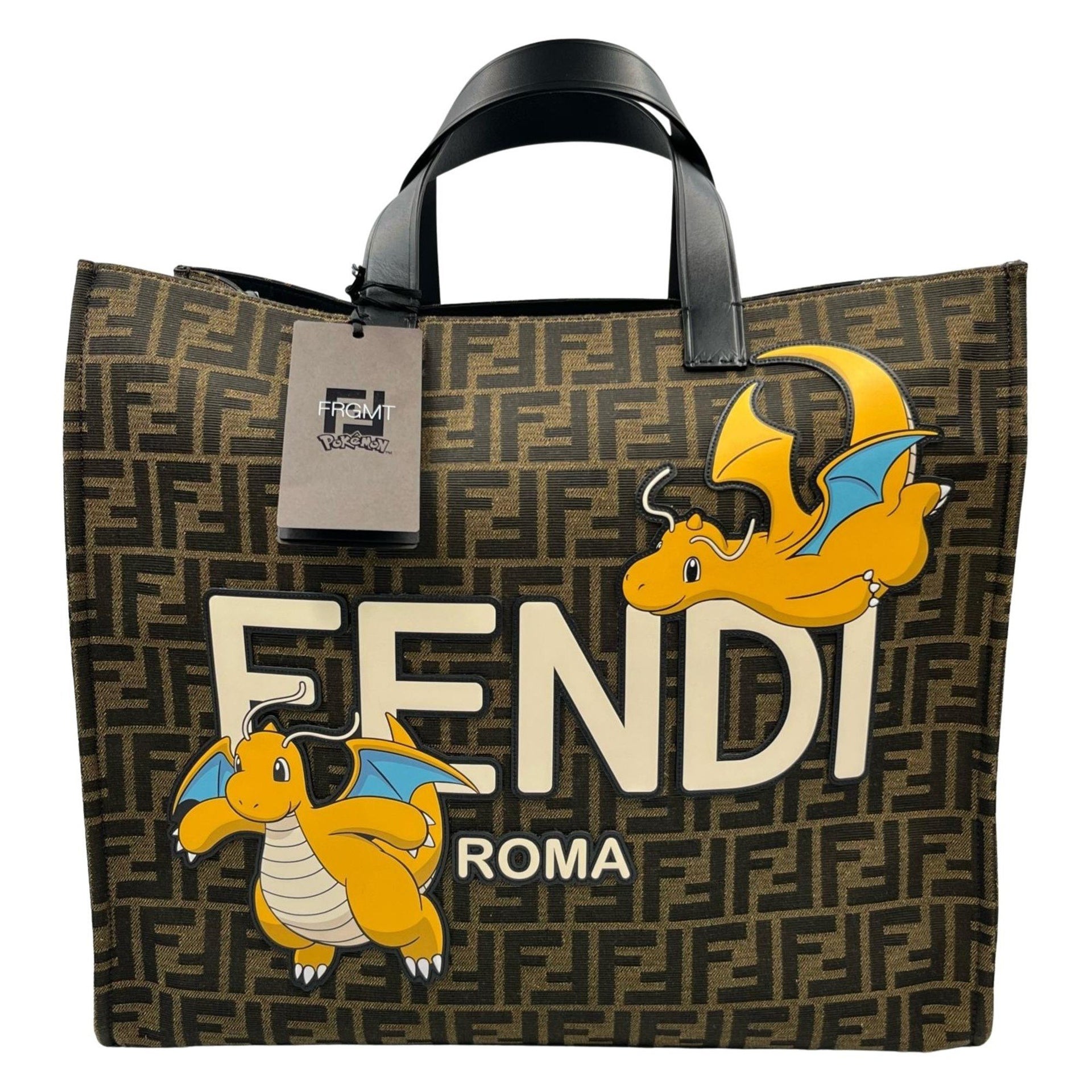 Fendi x FRGMT POKMON Brown FF Fabric Tote Bag 8BH357 Canvas Women\'s