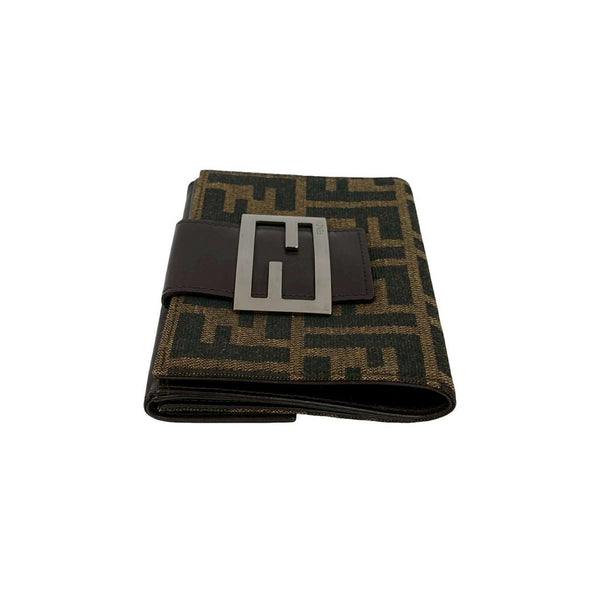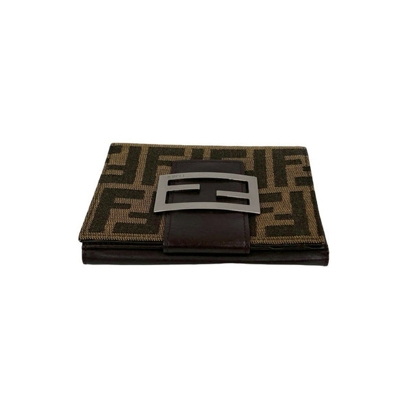 FENDI Zucca pattern FF logo hardware leather genuine canvas bifold mini wallet brown black 43102