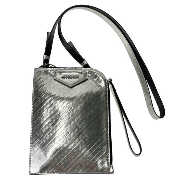 GIVENCHY Antigona Portfolio Pouch Handbag in Silver Patent Leather for Men and Women