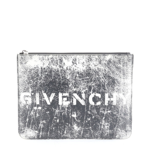 Givenchy logo distressed leather clutch bag/pouch in black for men