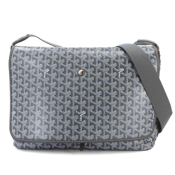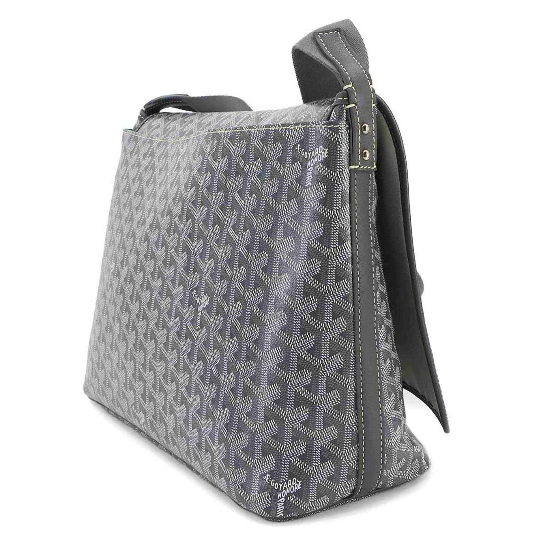 Goyard Capetien MM Shoulder Bag in PVC and Leather, Gray Herringbone
