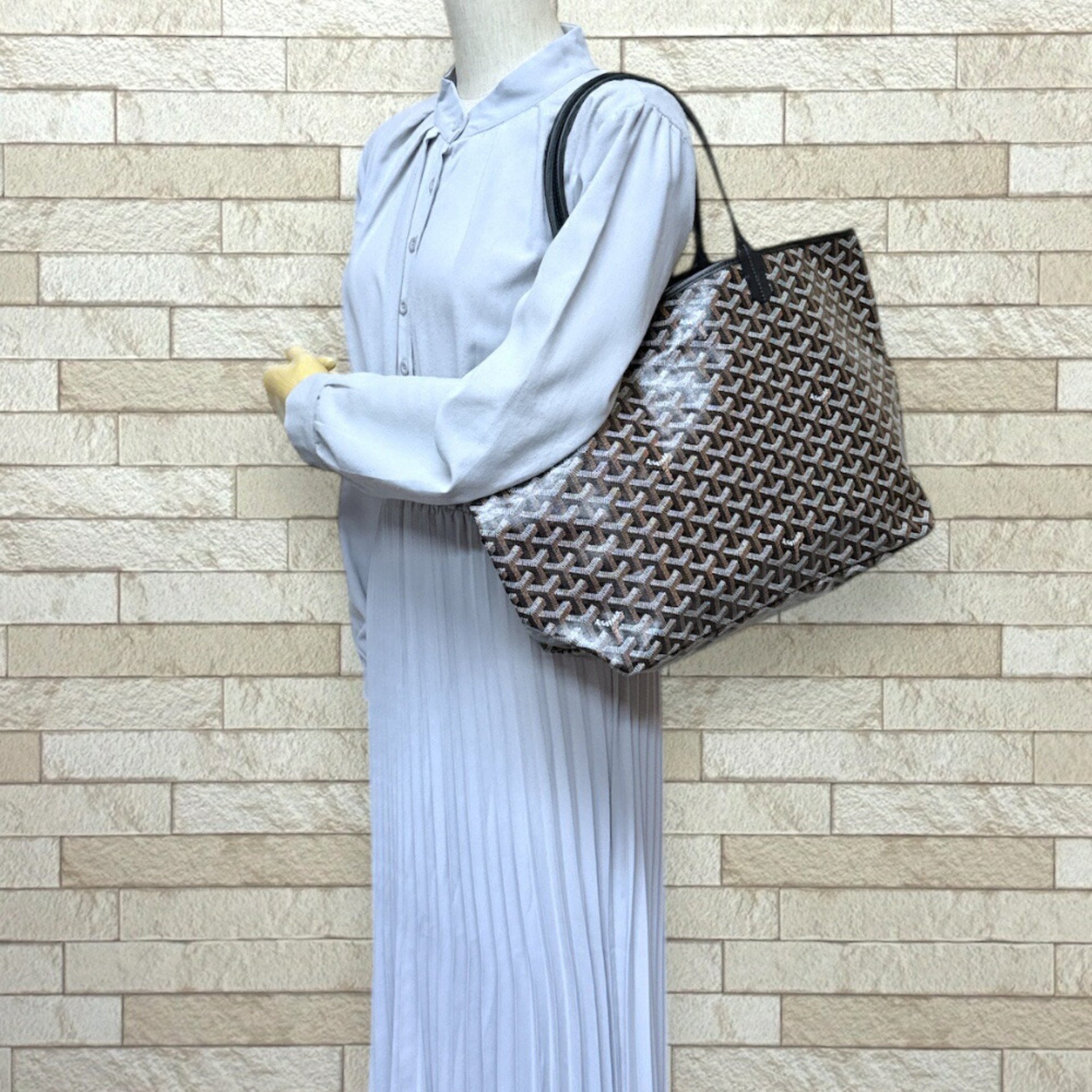 Goyard Saint Louis PM Tote Bag PVC Coated Canvas Black Unisex GOYARD