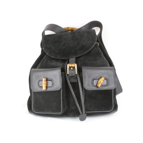 GUCCI 003-1118-0016 Bamboo Backpack/Daypack Black Suede