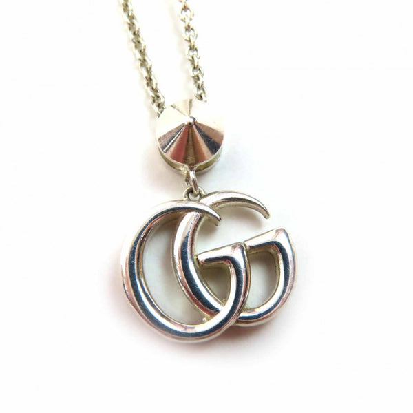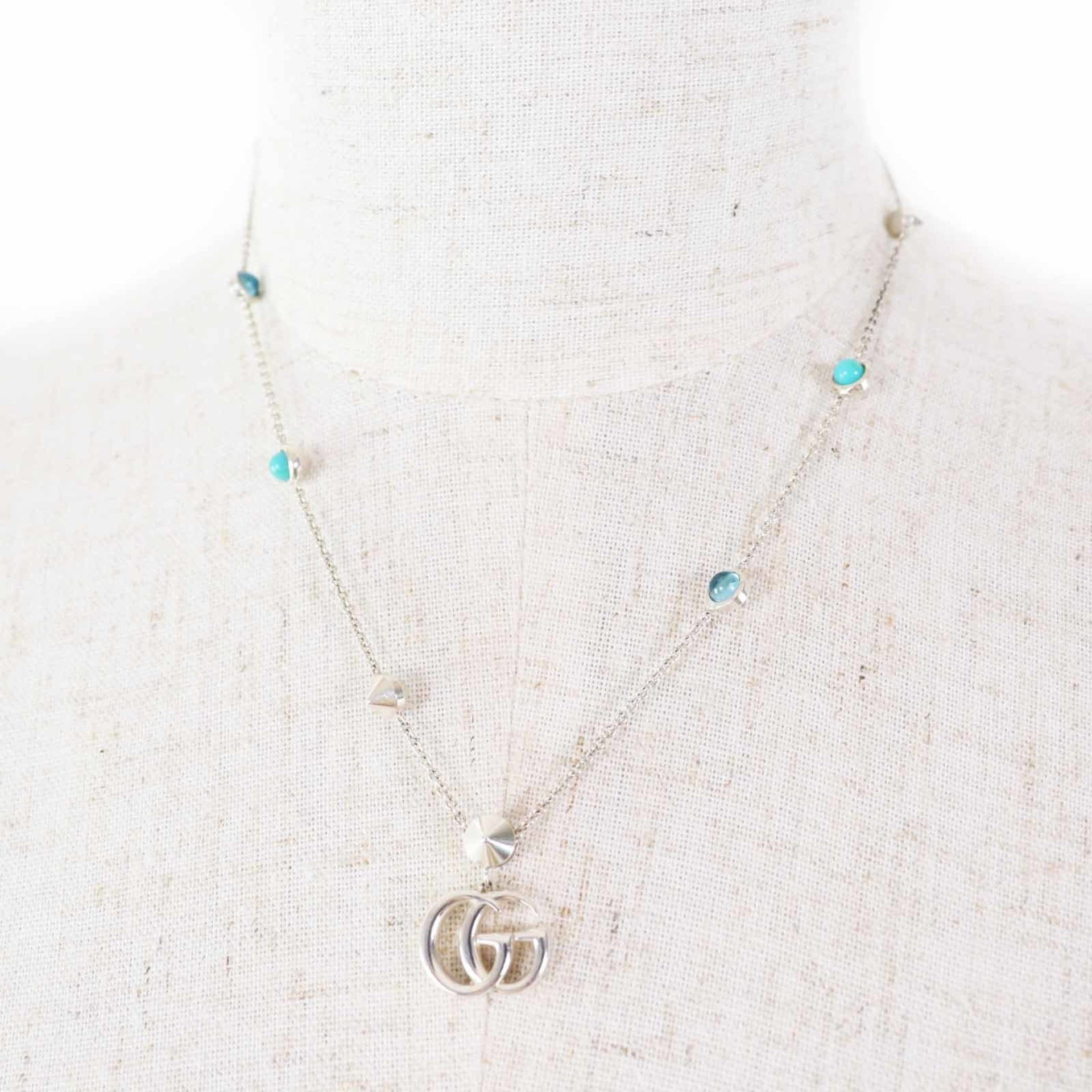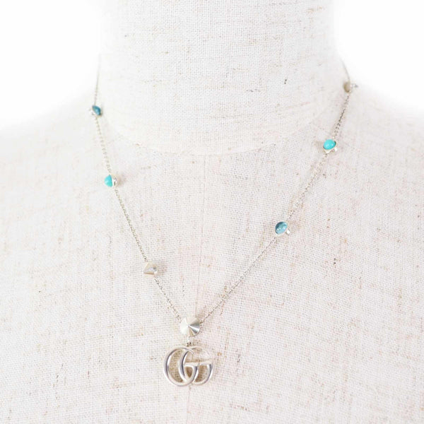 GUCCI 527399 Double G Mother-of-Pearl Necklace, Current Model, AG925, Colored Stones, Silver, Light Blue, Made in Italy, Weight 10.6g, Women\'s